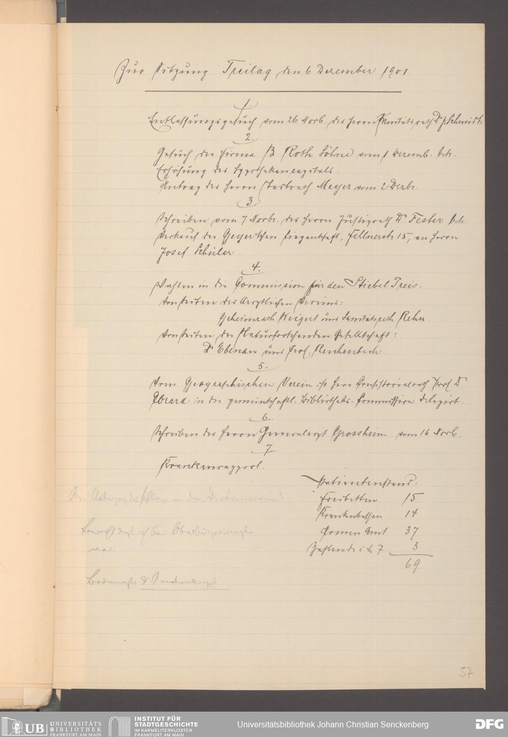 V48 Dr. Senckenbergische Stiftung, 165 - ... Sitzungsprotokolle der Dr. Senckenbergischen Stiftungsadministration (Abschriften), Bd. 3