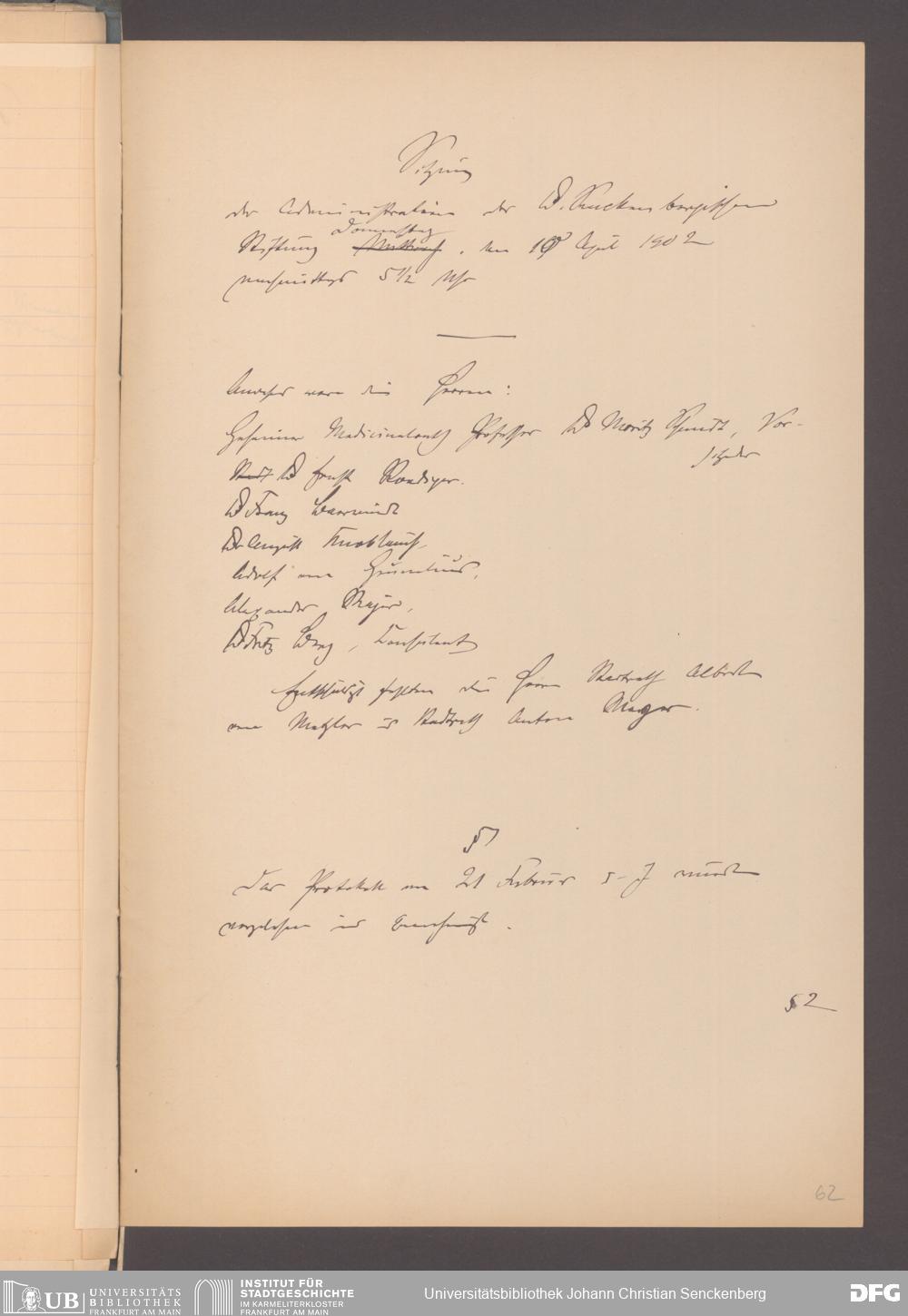 V48 Dr. Senckenbergische Stiftung, 165 - ... Sitzungsprotokolle der Dr. Senckenbergischen Stiftungsadministration (Abschriften), Bd. 3