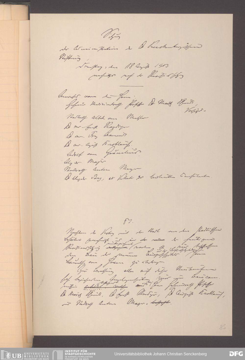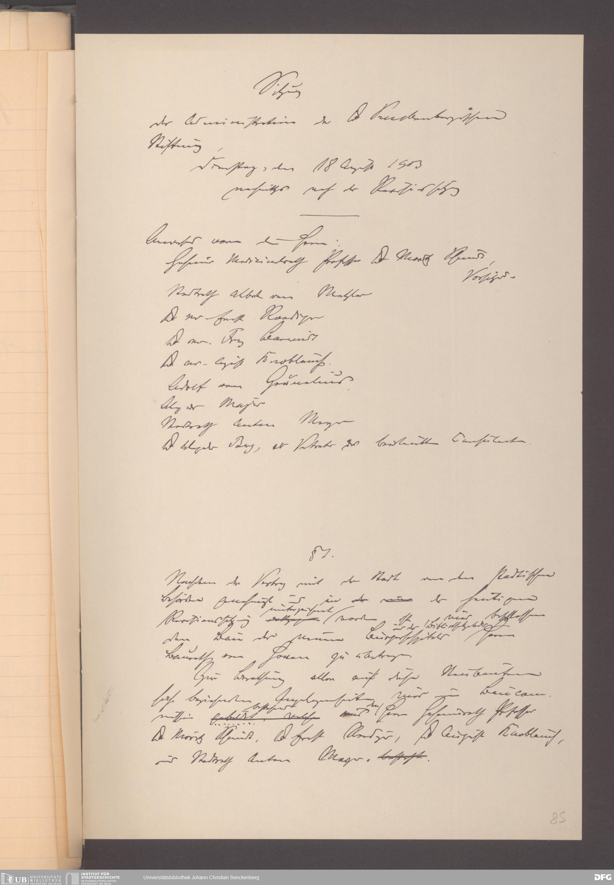 V48 Dr. Senckenbergische Stiftung, 165 - ... Sitzungsprotokolle der Dr. Senckenbergischen Stiftungsadministration (Abschriften), Bd. 3