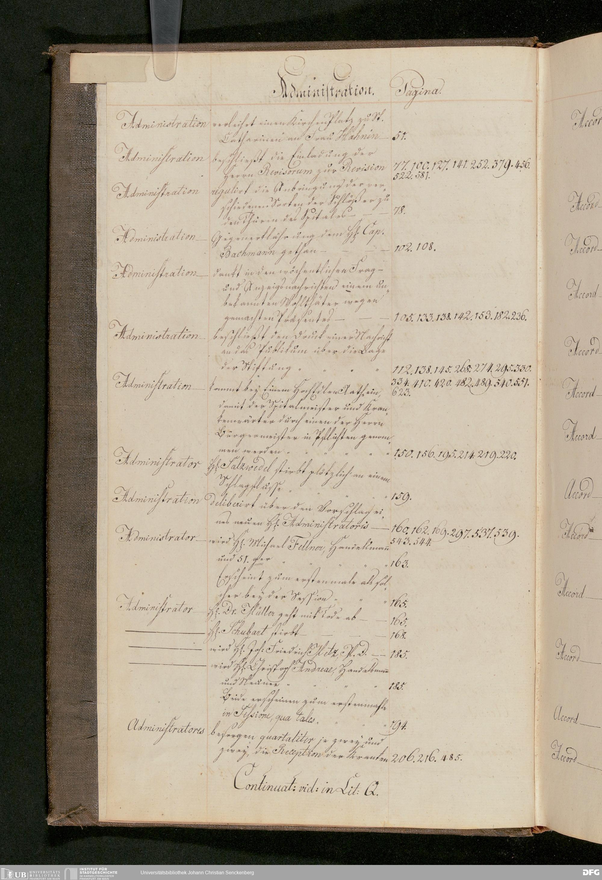 V48 Dr. Senckenbergische Stiftung, 174 - ... Register zum Amtsprotokoll der Dr. Senckenbergischen Stiftung, Teil 1
