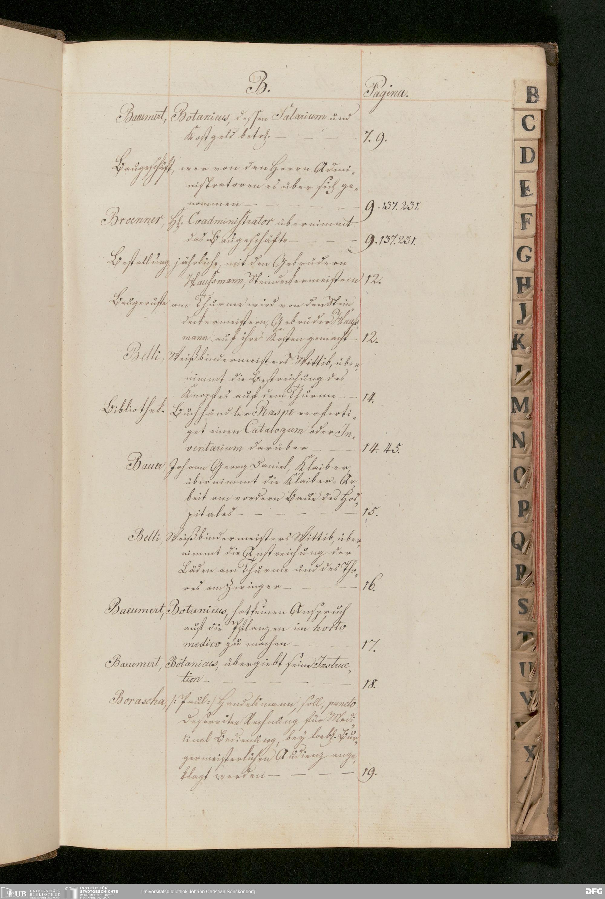 V48 Dr. Senckenbergische Stiftung, 174 - ... Register zum Amtsprotokoll der Dr. Senckenbergischen Stiftung, Teil 1