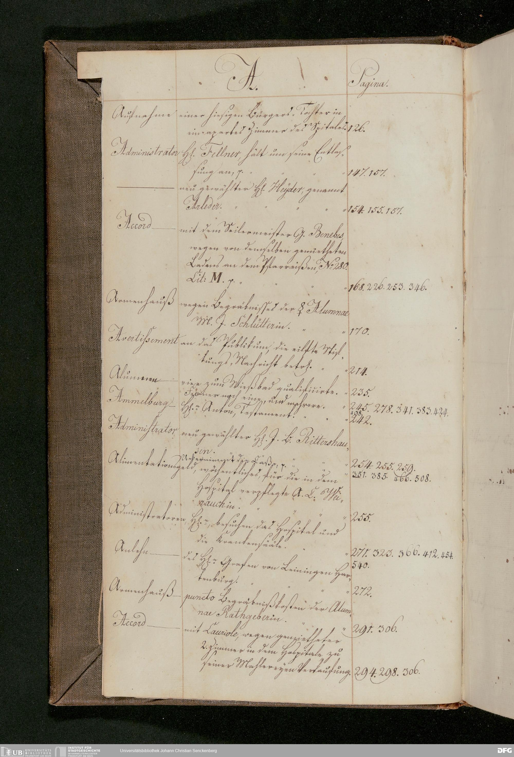 V48 Dr. Senckenbergische Stiftung, 175 - ... Register zum Amtsprotokoll der Dr. Senckenbergischen Stiftung, Teil 2