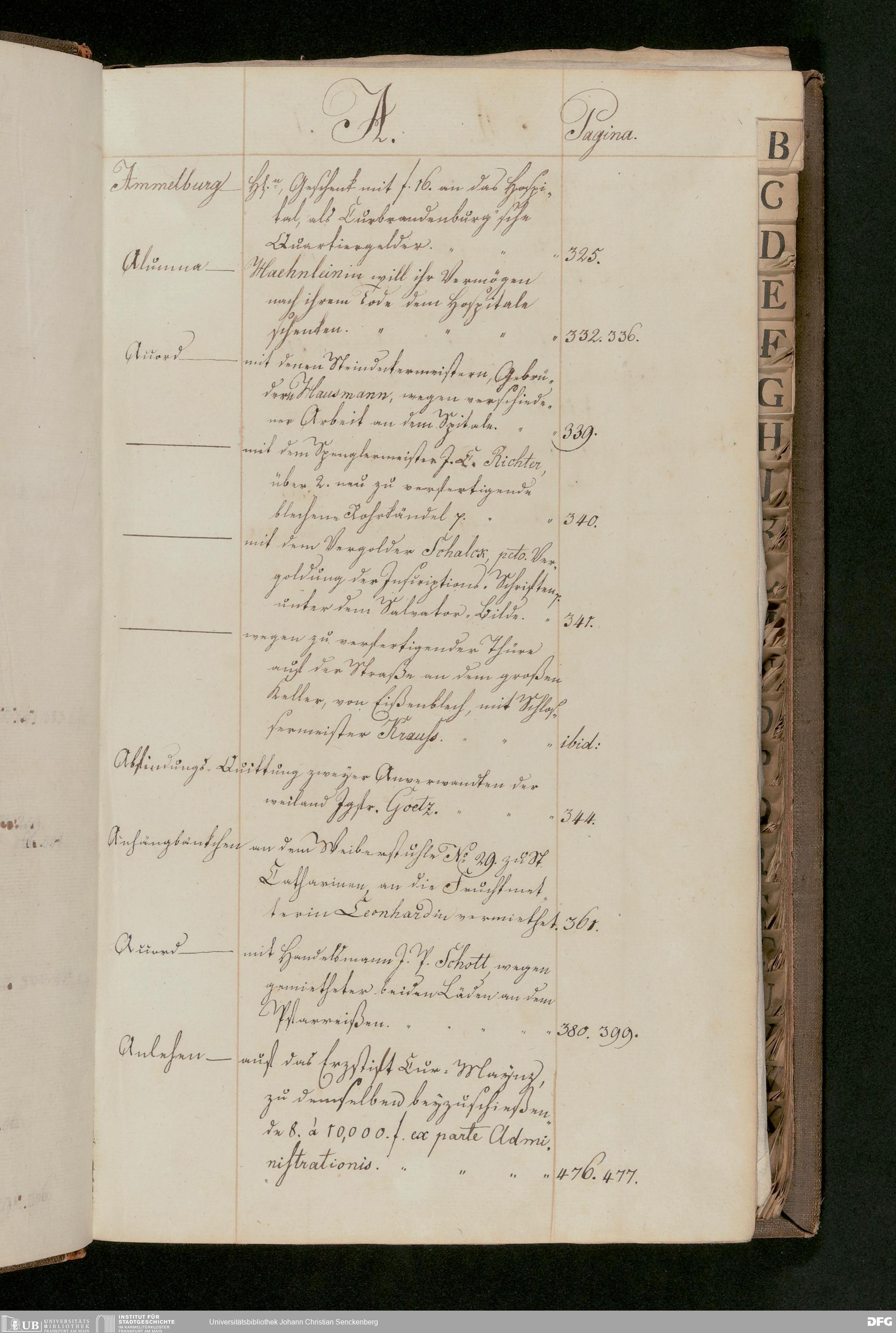 V48 Dr. Senckenbergische Stiftung, 175 - ... Register zum Amtsprotokoll der Dr. Senckenbergischen Stiftung, Teil 2