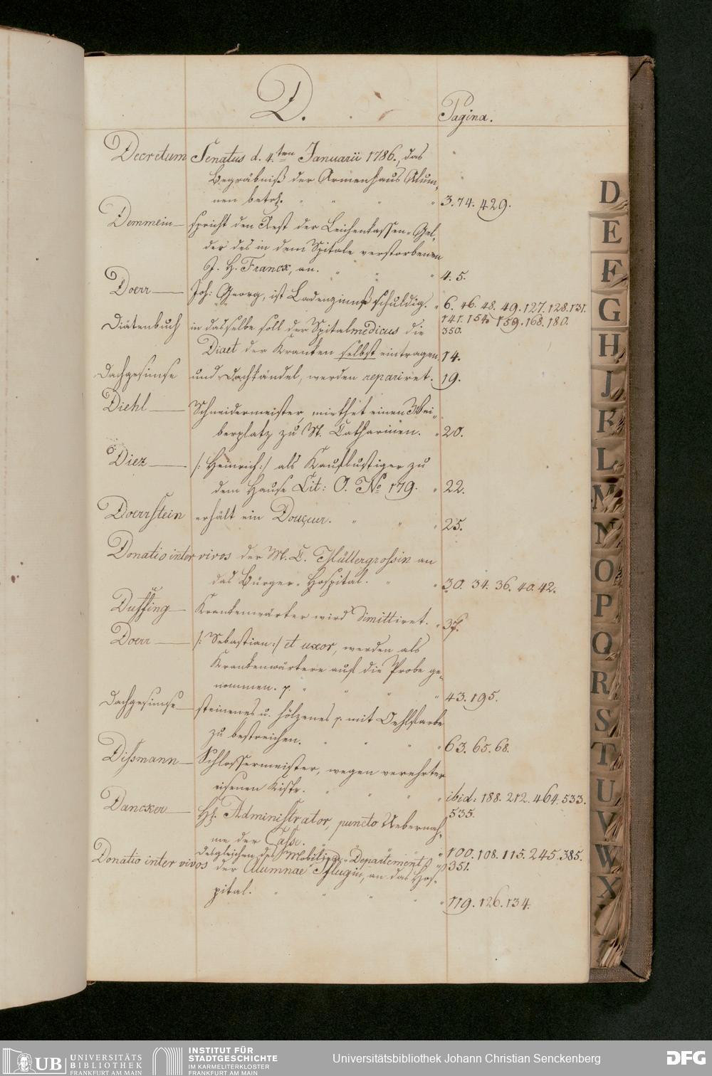 V48 Dr. Senckenbergische Stiftung, 175 - ... Register zum Amtsprotokoll der Dr. Senckenbergischen Stiftung, Teil 2
