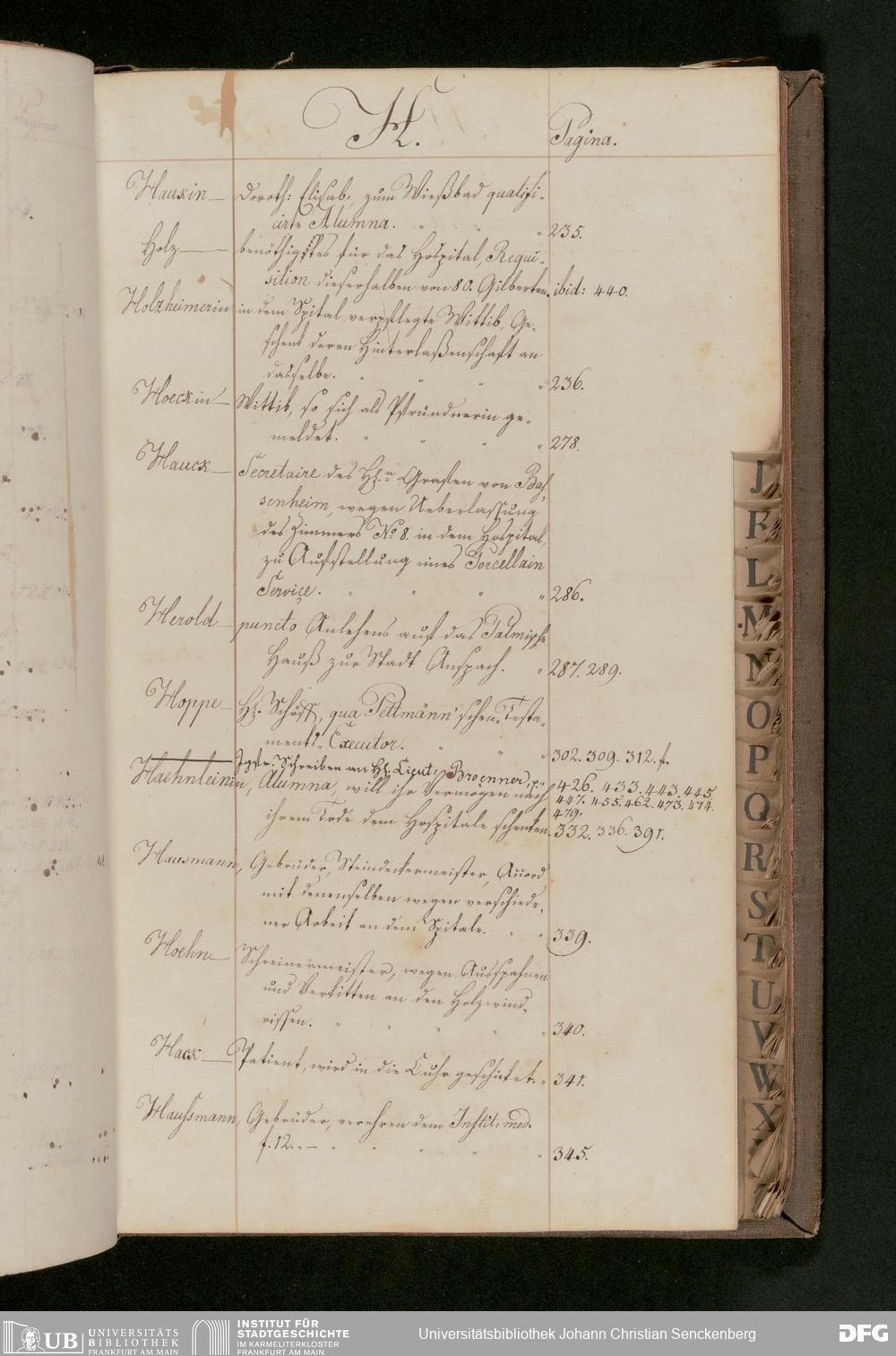 V48 Dr. Senckenbergische Stiftung, 175 - ... Register zum Amtsprotokoll der Dr. Senckenbergischen Stiftung, Teil 2