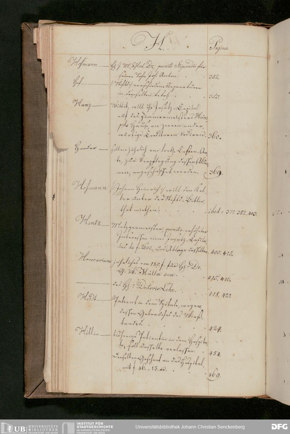 V48 Dr. Senckenbergische Stiftung, 175 - ... Register zum Amtsprotokoll der Dr. Senckenbergischen Stiftung, Teil 2
