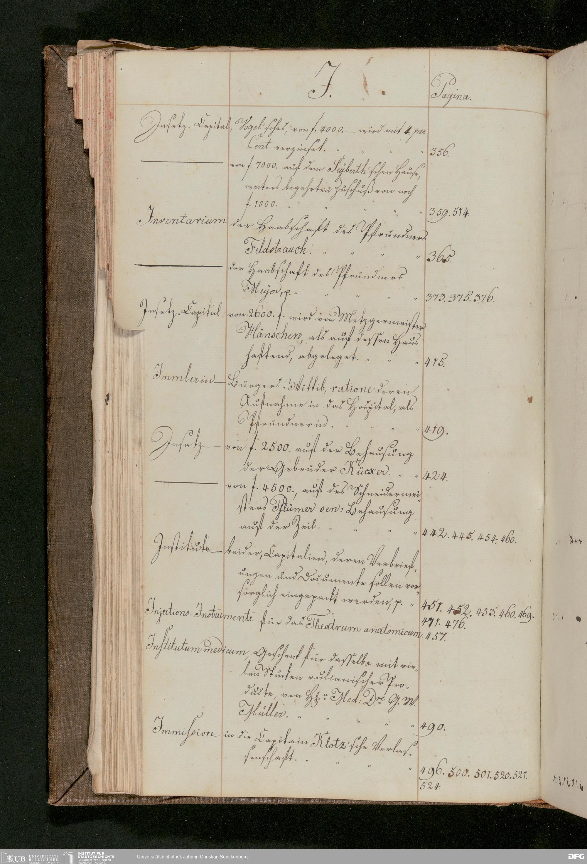 V48 Dr. Senckenbergische Stiftung, 175 - ... Register zum Amtsprotokoll der Dr. Senckenbergischen Stiftung, Teil 2