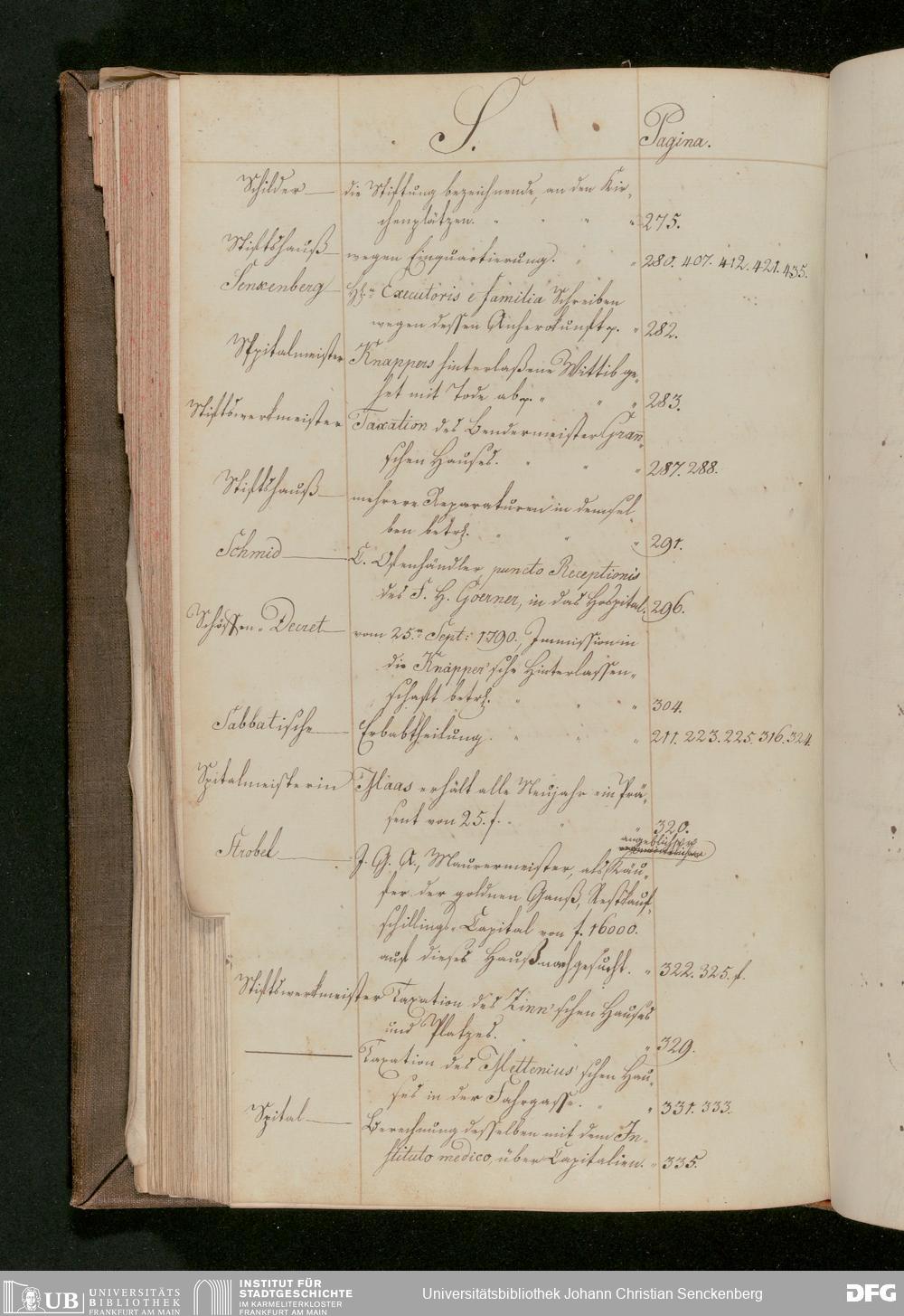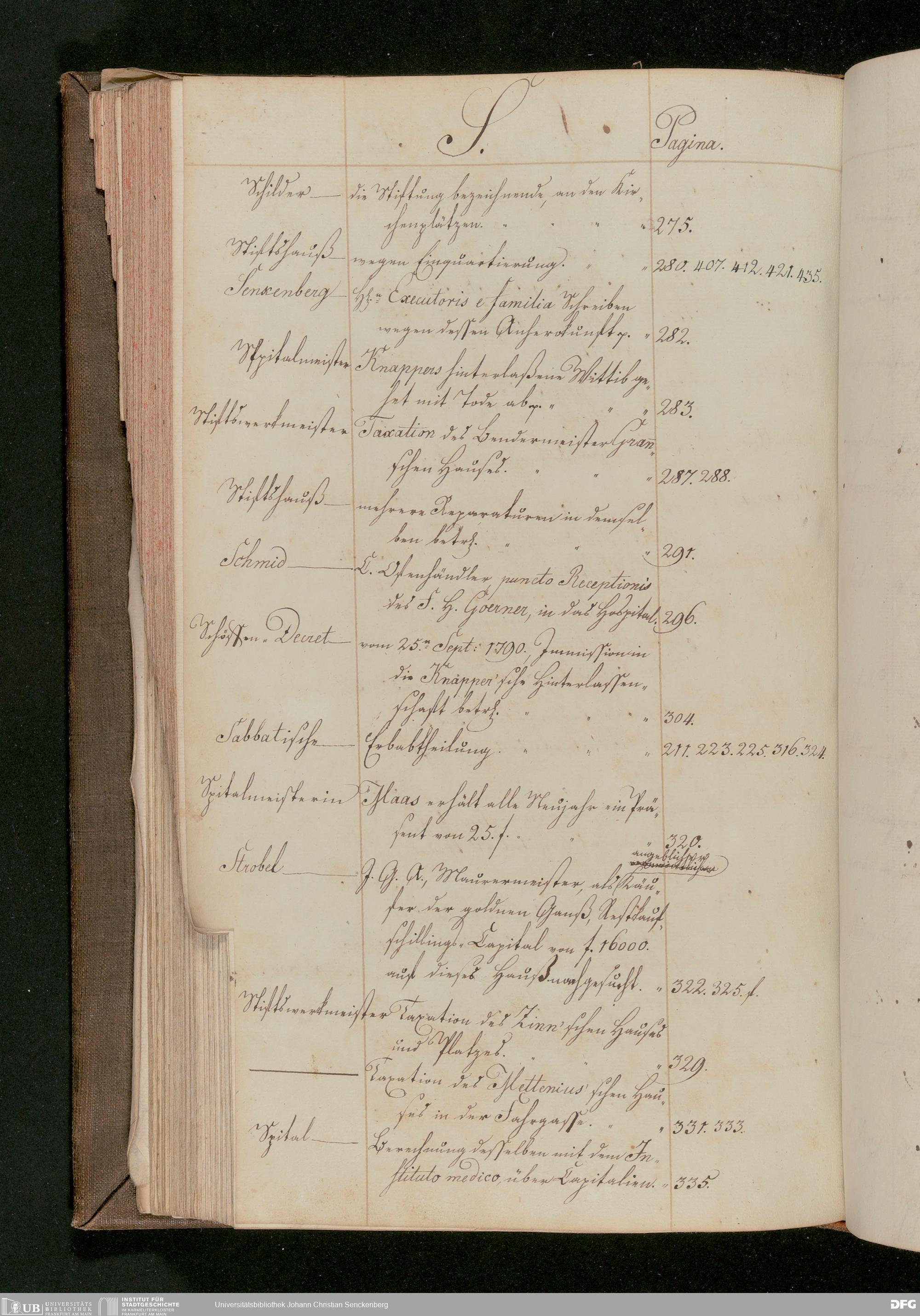 V48 Dr. Senckenbergische Stiftung, 175 - ... Register zum Amtsprotokoll der Dr. Senckenbergischen Stiftung, Teil 2