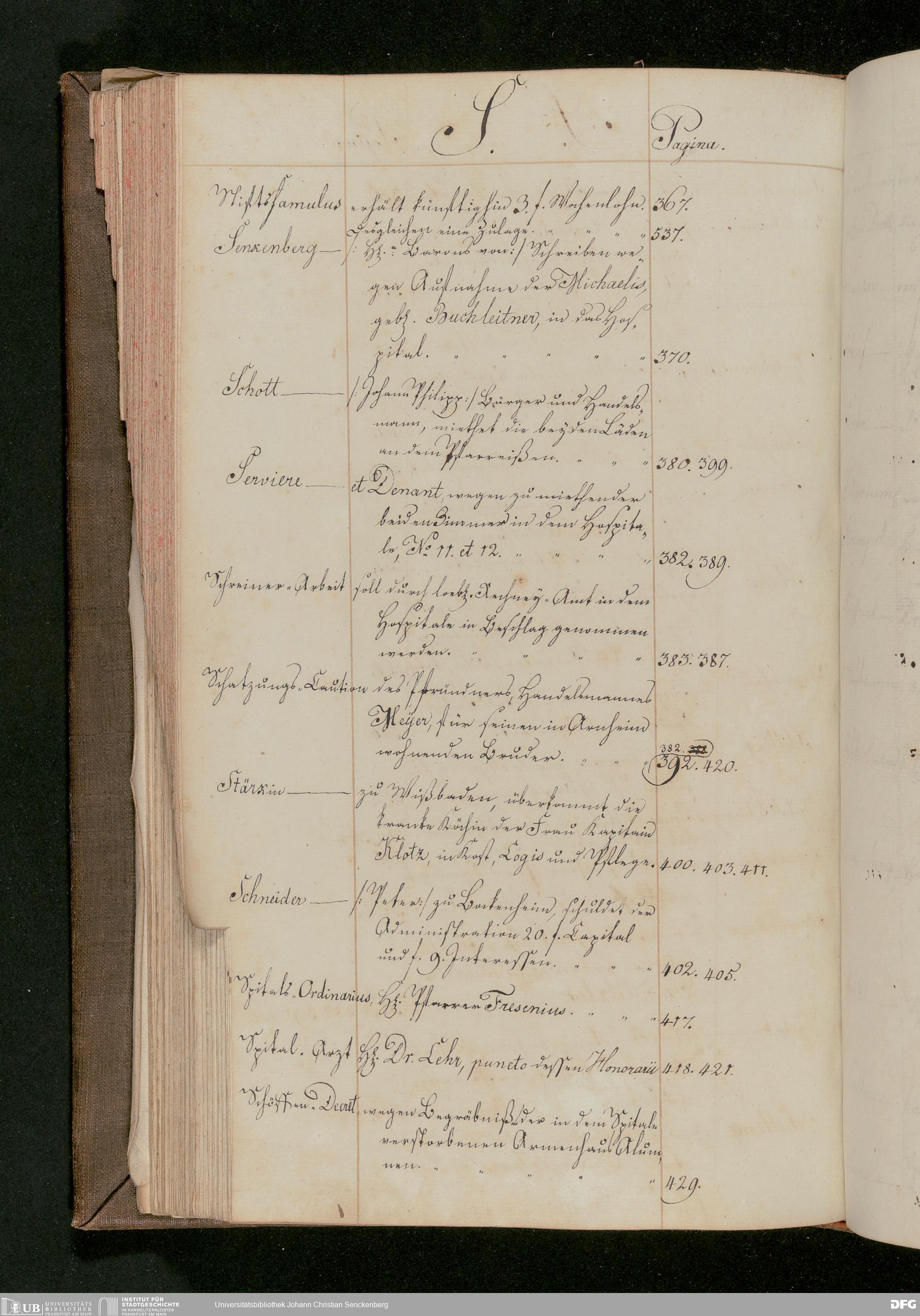 V48 Dr. Senckenbergische Stiftung, 175 - ... Register zum Amtsprotokoll der Dr. Senckenbergischen Stiftung, Teil 2