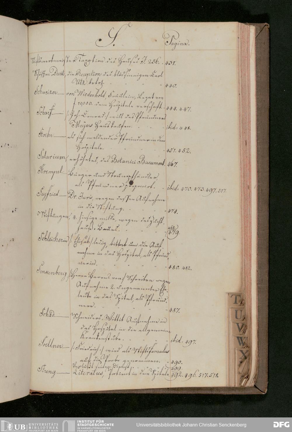 V48 Dr. Senckenbergische Stiftung, 175 - ... Register zum Amtsprotokoll der Dr. Senckenbergischen Stiftung, Teil 2