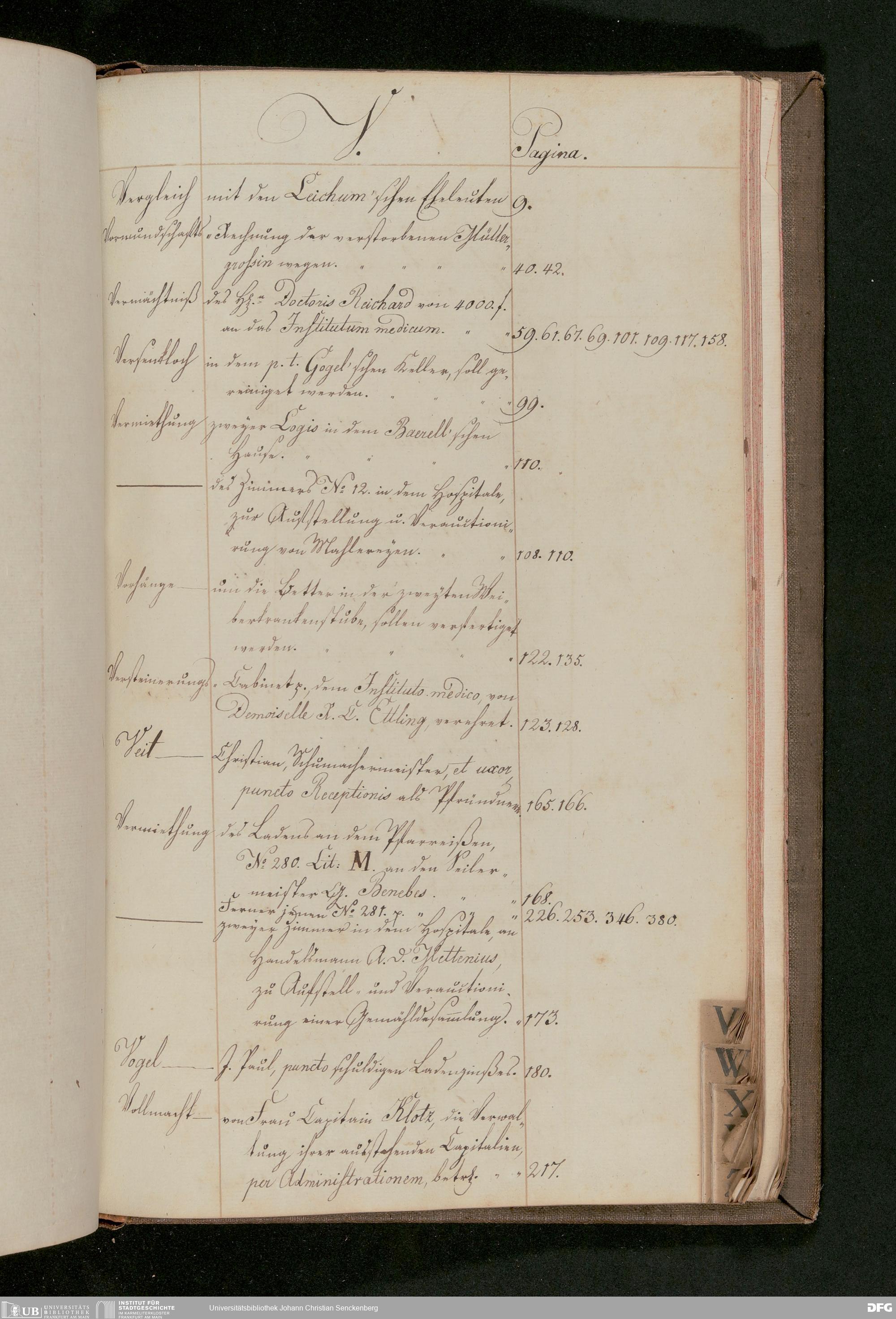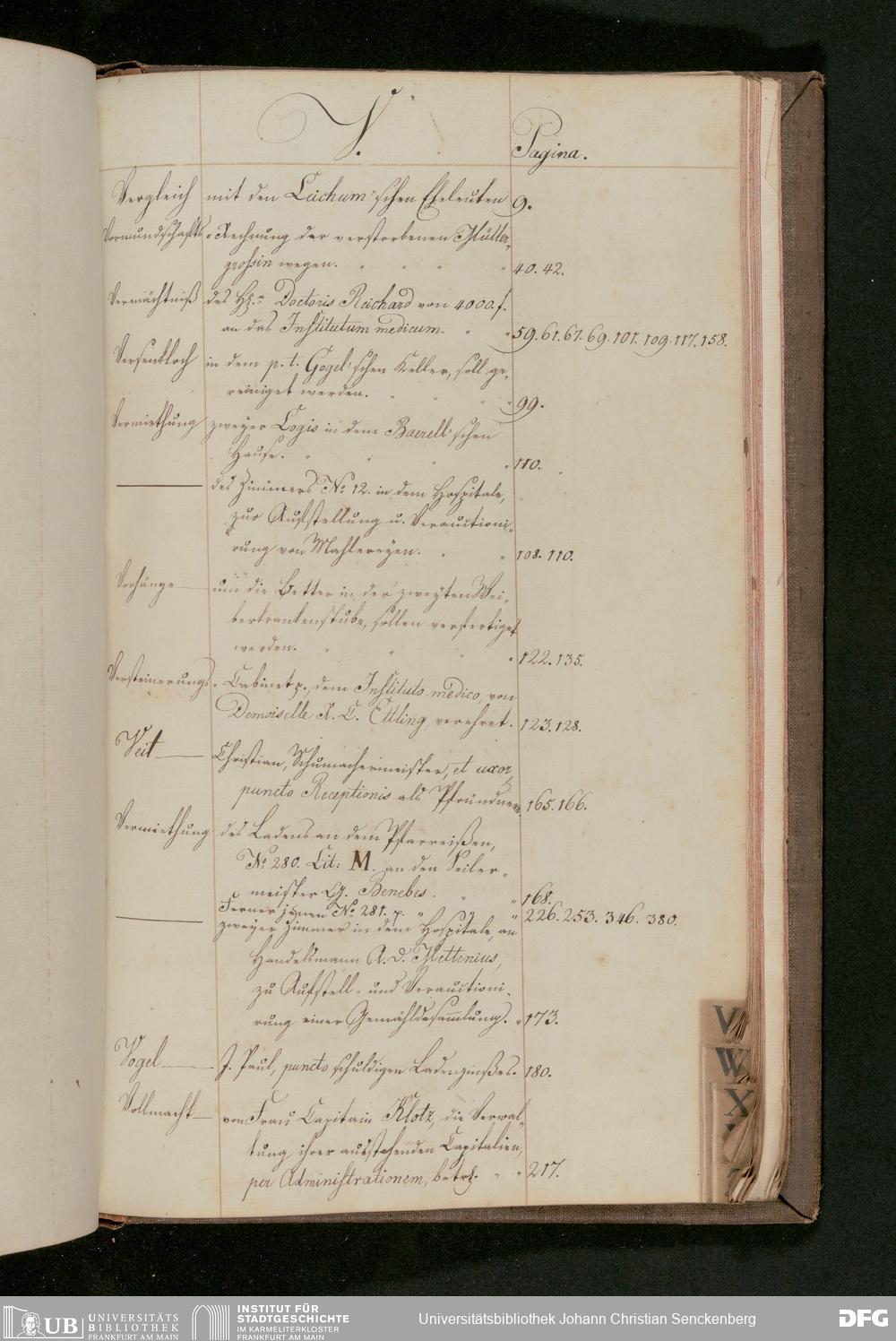 V48 Dr. Senckenbergische Stiftung, 175 - ... Register zum Amtsprotokoll der Dr. Senckenbergischen Stiftung, Teil 2