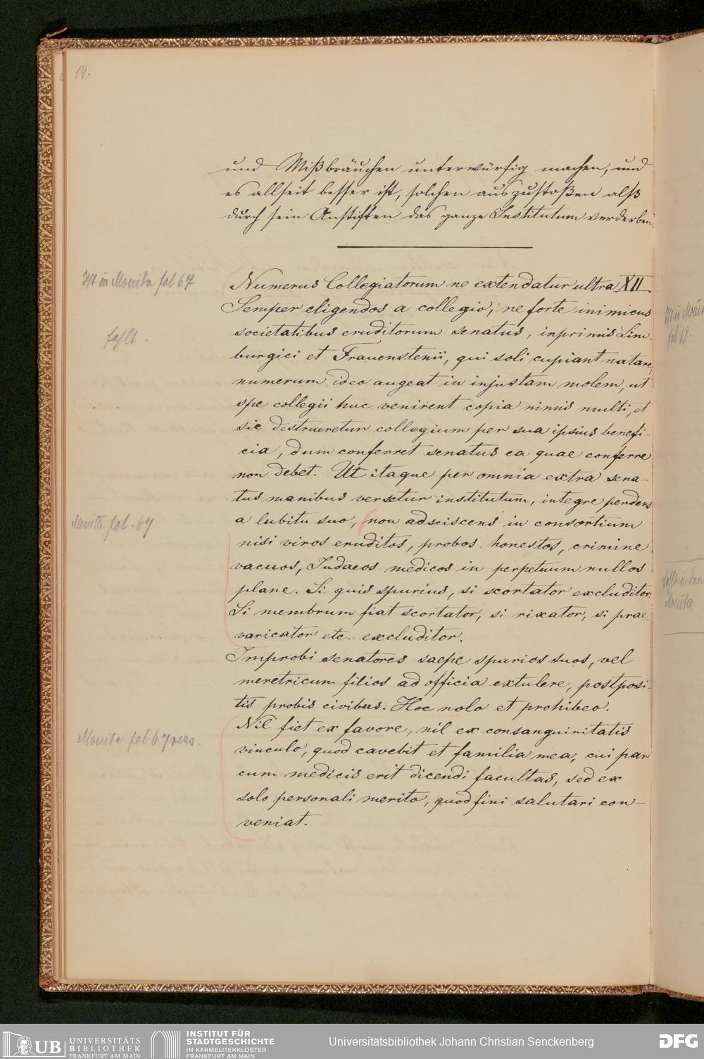 V48 Dr. Senckenbergische Stiftung, 230 - "Senckenbergische Zusätze und Notamina zu seinem Stiftungsbrief (1749-1769) aus dem Stadtarchiv Ugb C. g. No. 2" (von Stadtarchivar Georg Ludwig Kriegk am 28. Juni 1869 beglaubigte Abschrift)