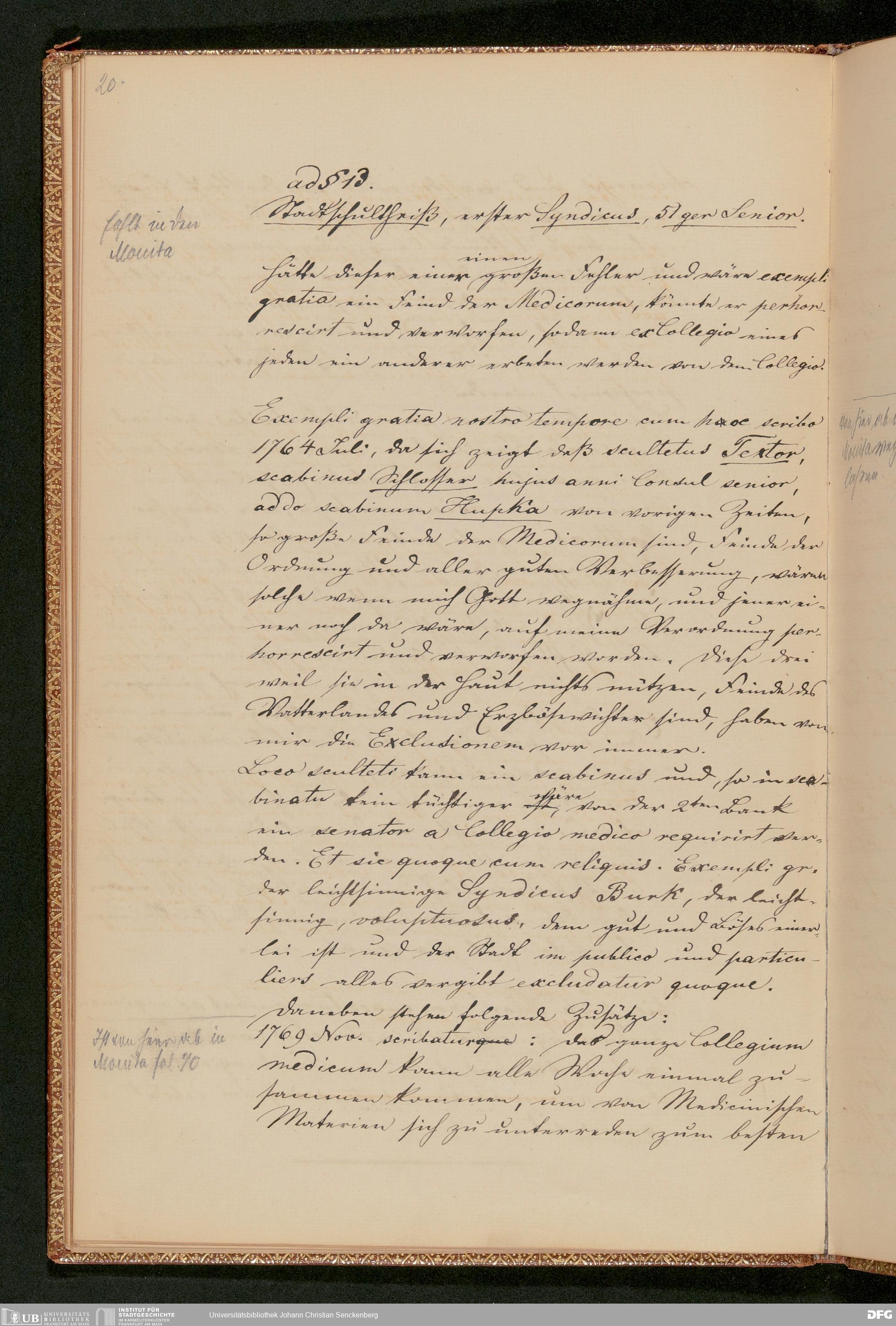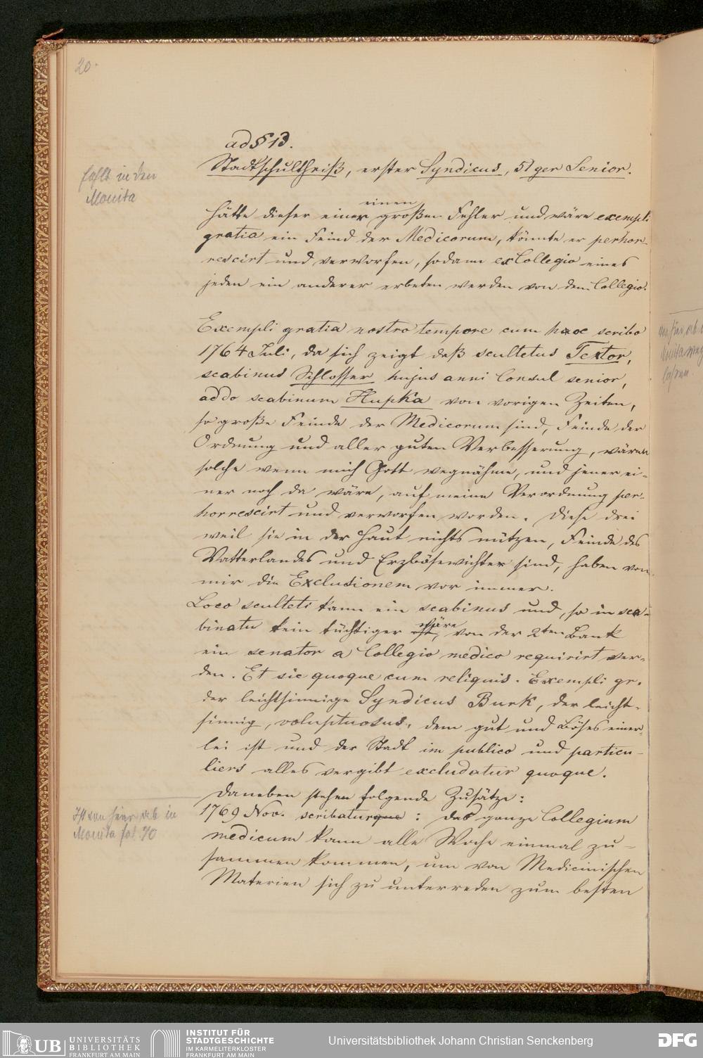 V48 Dr. Senckenbergische Stiftung, 230 - "Senckenbergische Zusätze und Notamina zu seinem Stiftungsbrief (1749-1769) aus dem Stadtarchiv Ugb C. g. No. 2" (von Stadtarchivar Georg Ludwig Kriegk am 28. Juni 1869 beglaubigte Abschrift)