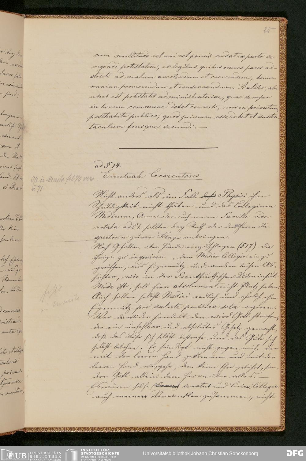 V48 Dr. Senckenbergische Stiftung, 230 - "Senckenbergische Zusätze und Notamina zu seinem Stiftungsbrief (1749-1769) aus dem Stadtarchiv Ugb C. g. No. 2" (von Stadtarchivar Georg Ludwig Kriegk am 28. Juni 1869 beglaubigte Abschrift)