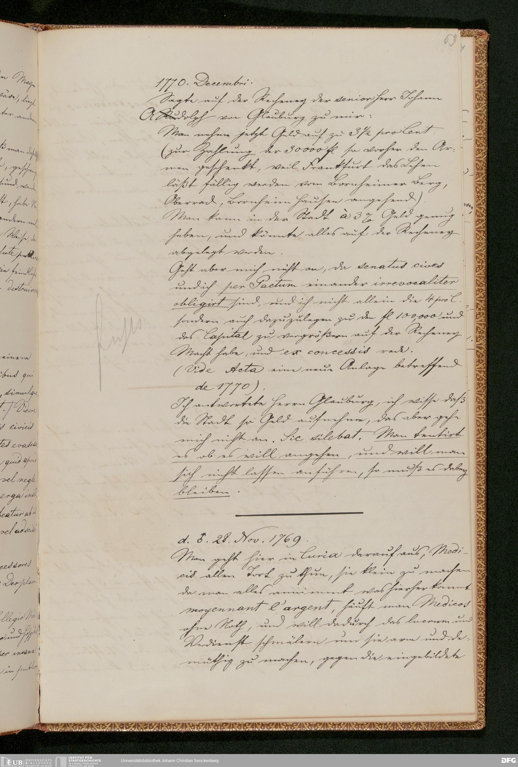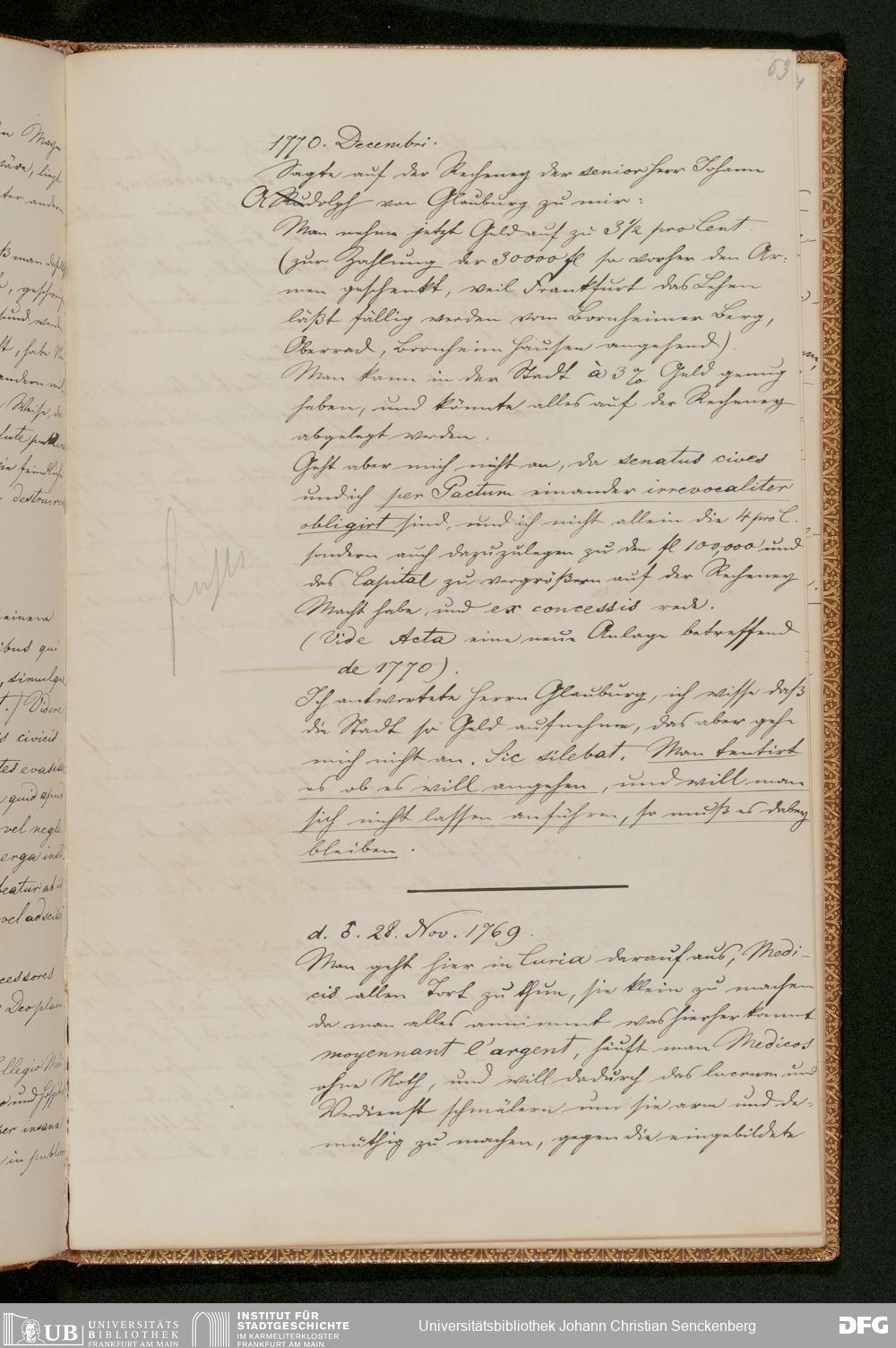 V48 Dr. Senckenbergische Stiftung, 230 - "Senckenbergische Zusätze und Notamina zu seinem Stiftungsbrief (1749-1769) aus dem Stadtarchiv Ugb C. g. No. 2" (von Stadtarchivar Georg Ludwig Kriegk am 28. Juni 1869 beglaubigte Abschrift)