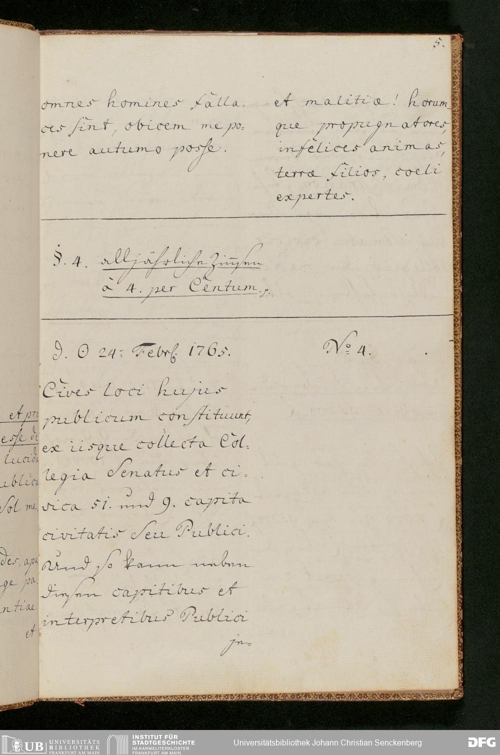 V48 Dr. Senckenbergische Stiftung, 231 - "Monita und Notamina an meine Herren Executores und das Collegium Medicum zur Nachricht, Execution und Befolgung. In Supplementum des Testamenti und respective Donations- und Stiftungs-Instrumenti d. d. 18. August 1763 in specie deßen § 18", Mai 1764