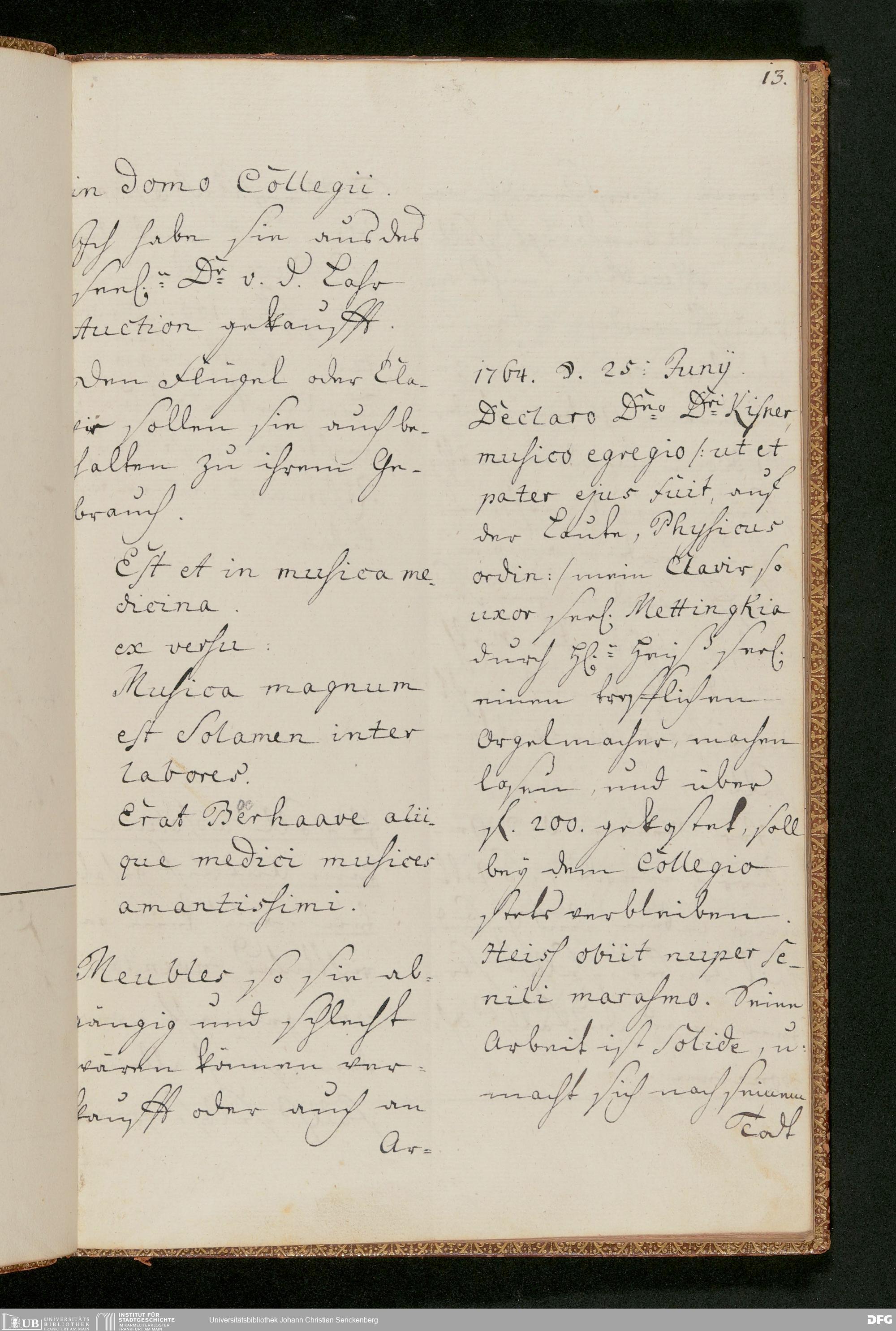 V48 Dr. Senckenbergische Stiftung, 231 - "Monita und Notamina an meine Herren Executores und das Collegium Medicum zur Nachricht, Execution und Befolgung. In Supplementum des Testamenti und respective Donations- und Stiftungs-Instrumenti d. d. 18. August 1763 in specie deßen § 18", Mai 1764