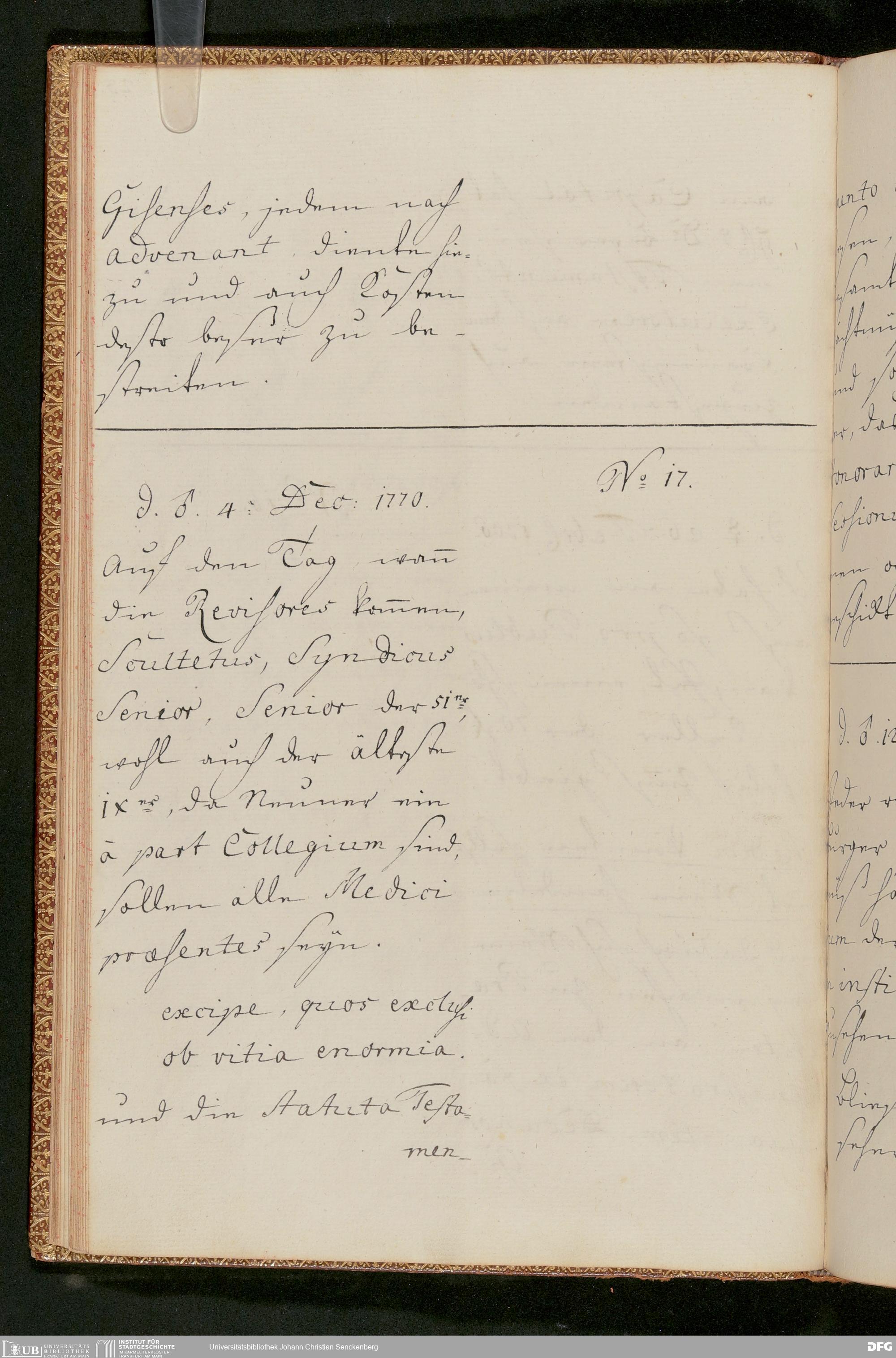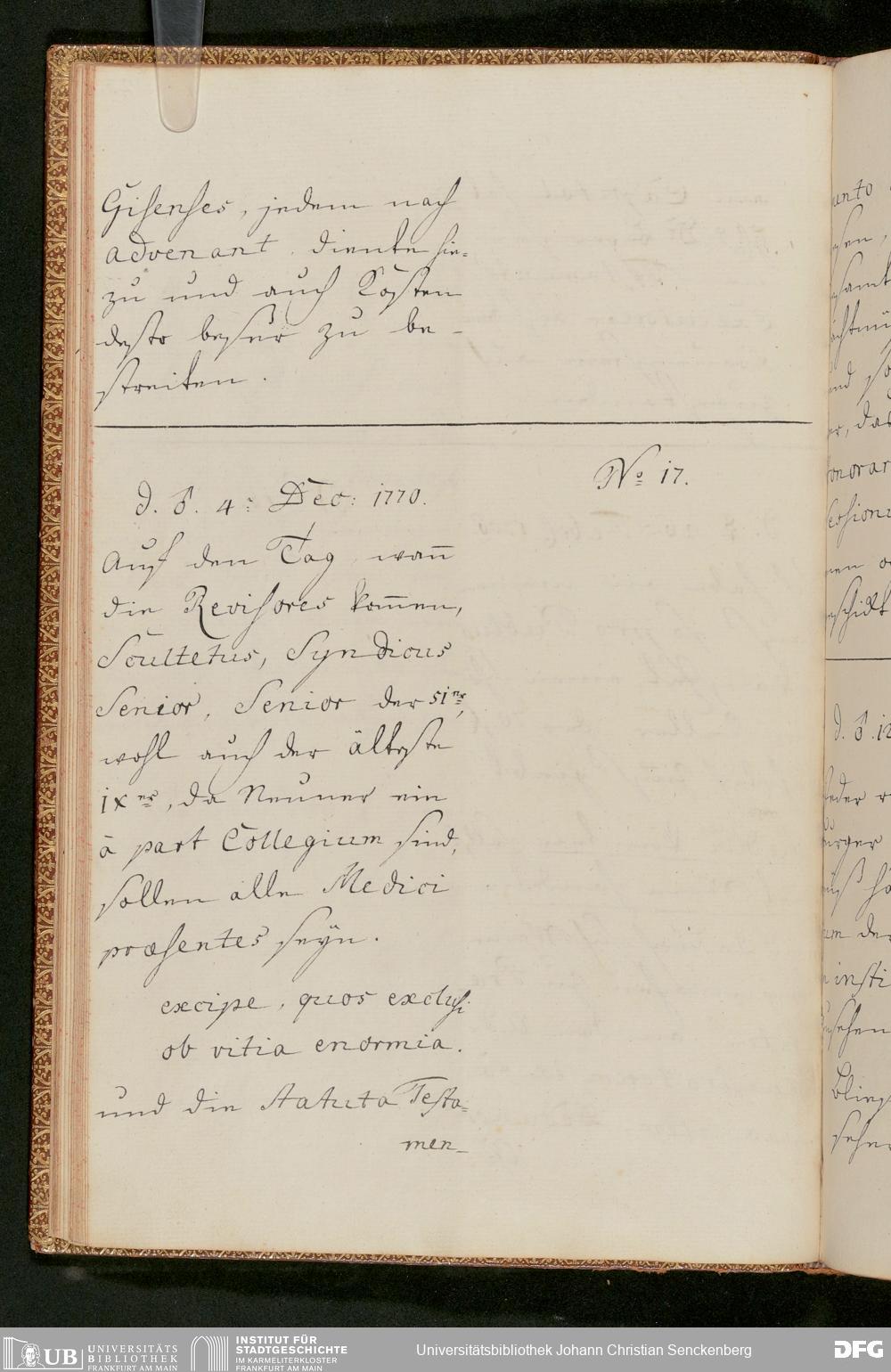 V48 Dr. Senckenbergische Stiftung, 231 - "Monita und Notamina an meine Herren Executores und das Collegium Medicum zur Nachricht, Execution und Befolgung. In Supplementum des Testamenti und respective Donations- und Stiftungs-Instrumenti d. d. 18. August 1763 in specie deßen § 18", Mai 1764