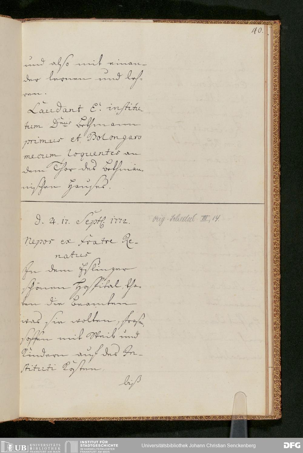 V48 Dr. Senckenbergische Stiftung, 231 - "Monita und Notamina an meine Herren Executores und das Collegium Medicum zur Nachricht, Execution und Befolgung. In Supplementum des Testamenti und respective Donations- und Stiftungs-Instrumenti d. d. 18. August 1763 in specie deßen § 18", Mai 1764