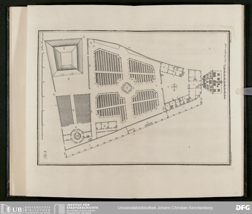 V48 Dr. Senckenbergische Stiftung, 233 - Stiftungsbrief: "Johann Christian Senckenberg Medicinae Doctoris und Physici Ordinarii zu Frankfurt Stiftungs-Briefe zum Besten der Artzneykunst und Armenpflege; Samt Nachricht wegen eines zu unternehmenden Buerger- und Beysassen-Hospitals zum Behufe der Stadt Frankfurt. Nebst Vorbericht Renat Leopold Christian Carl Freyherrn von Senckenberg; Mit Beylagen und zwoen Kupfer-Tabellen", Frankfurt a. M. 1770