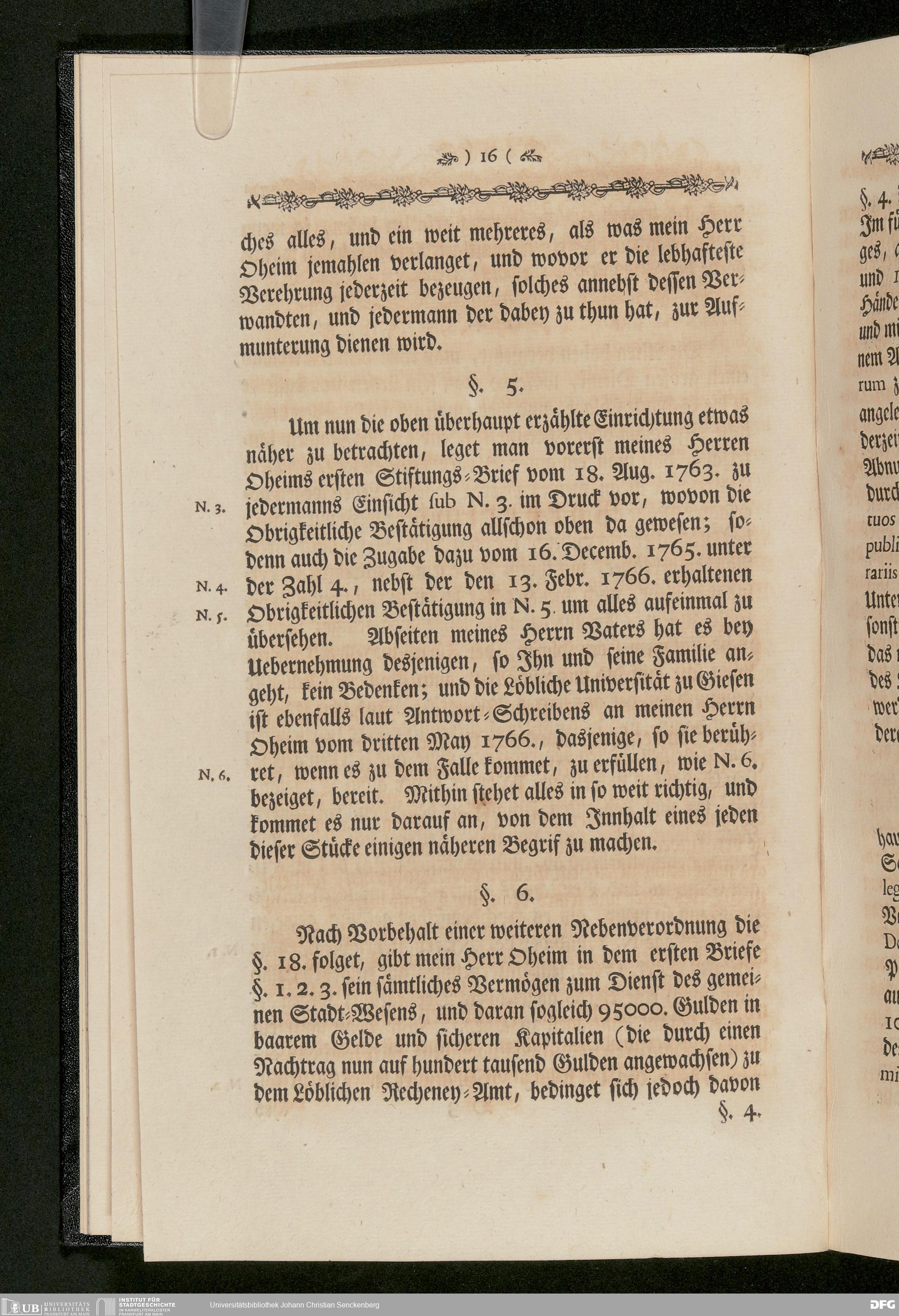 V48 Dr. Senckenbergische Stiftung, 233 - Stiftungsbrief: "Johann Christian Senckenberg Medicinae Doctoris und Physici Ordinarii zu Frankfurt Stiftungs-Briefe zum Besten der Artzneykunst und Armenpflege; Samt Nachricht wegen eines zu unternehmenden Buerger- und Beysassen-Hospitals zum Behufe der Stadt Frankfurt. Nebst Vorbericht Renat Leopold Christian Carl Freyherrn von Senckenberg; Mit Beylagen und zwoen Kupfer-Tabellen", Frankfurt a. M. 1770