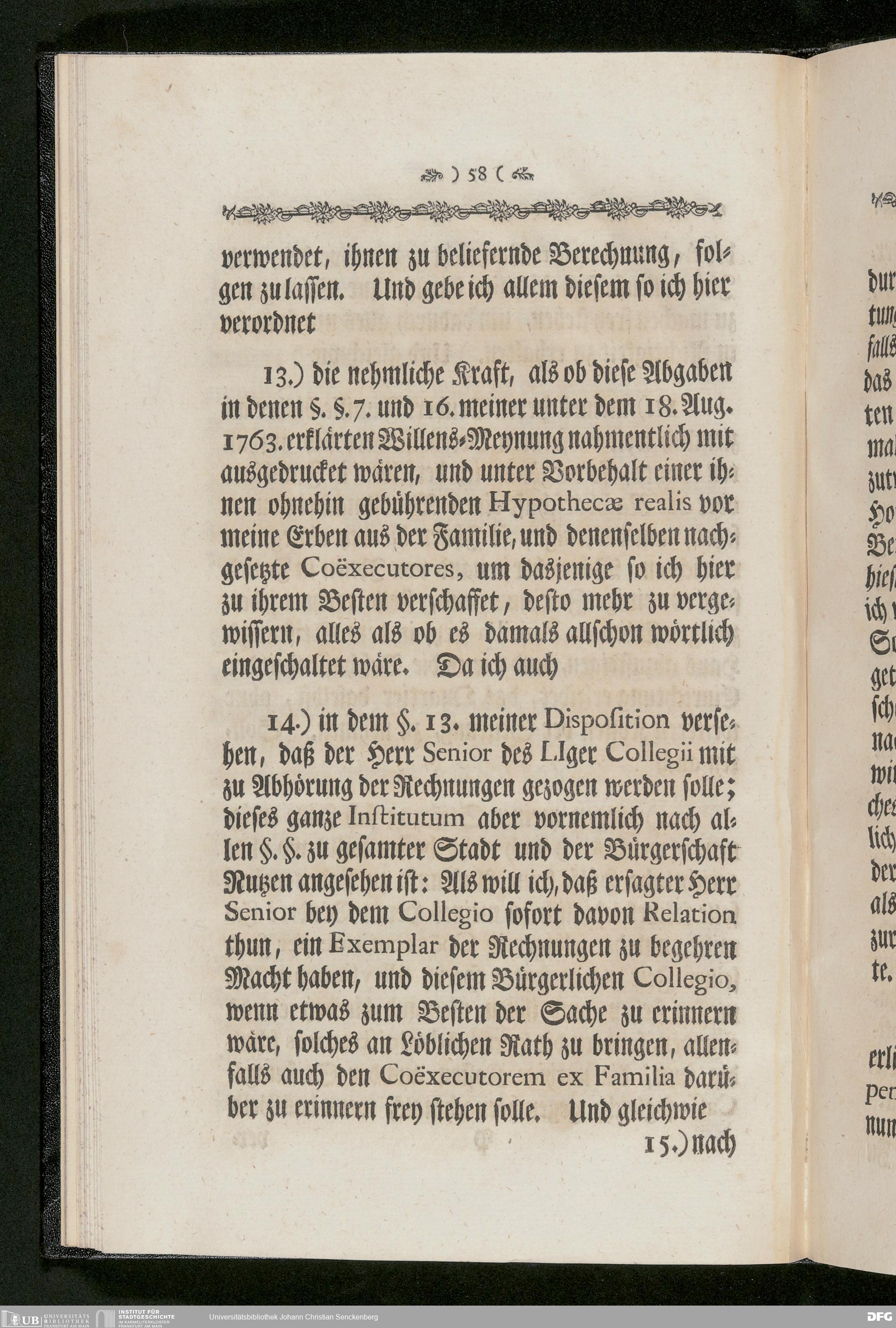V48 Dr. Senckenbergische Stiftung, 233 - Stiftungsbrief: "Johann Christian Senckenberg Medicinae Doctoris und Physici Ordinarii zu Frankfurt Stiftungs-Briefe zum Besten der Artzneykunst und Armenpflege; Samt Nachricht wegen eines zu unternehmenden Buerger- und Beysassen-Hospitals zum Behufe der Stadt Frankfurt. Nebst Vorbericht Renat Leopold Christian Carl Freyherrn von Senckenberg; Mit Beylagen und zwoen Kupfer-Tabellen", Frankfurt a. M. 1770
