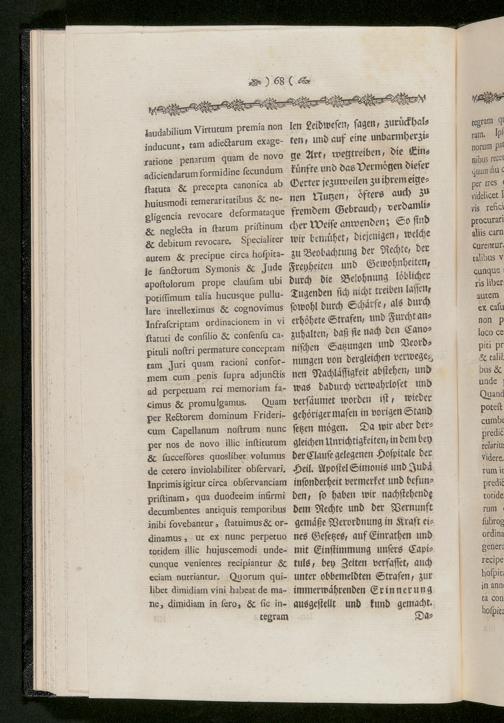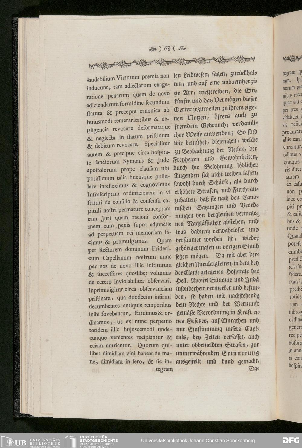 V48 Dr. Senckenbergische Stiftung, 233 - Stiftungsbrief: "Johann Christian Senckenberg Medicinae Doctoris und Physici Ordinarii zu Frankfurt Stiftungs-Briefe zum Besten der Artzneykunst und Armenpflege; Samt Nachricht wegen eines zu unternehmenden Buerger- und Beysassen-Hospitals zum Behufe der Stadt Frankfurt. Nebst Vorbericht Renat Leopold Christian Carl Freyherrn von Senckenberg; Mit Beylagen und zwoen Kupfer-Tabellen", Frankfurt a. M. 1770