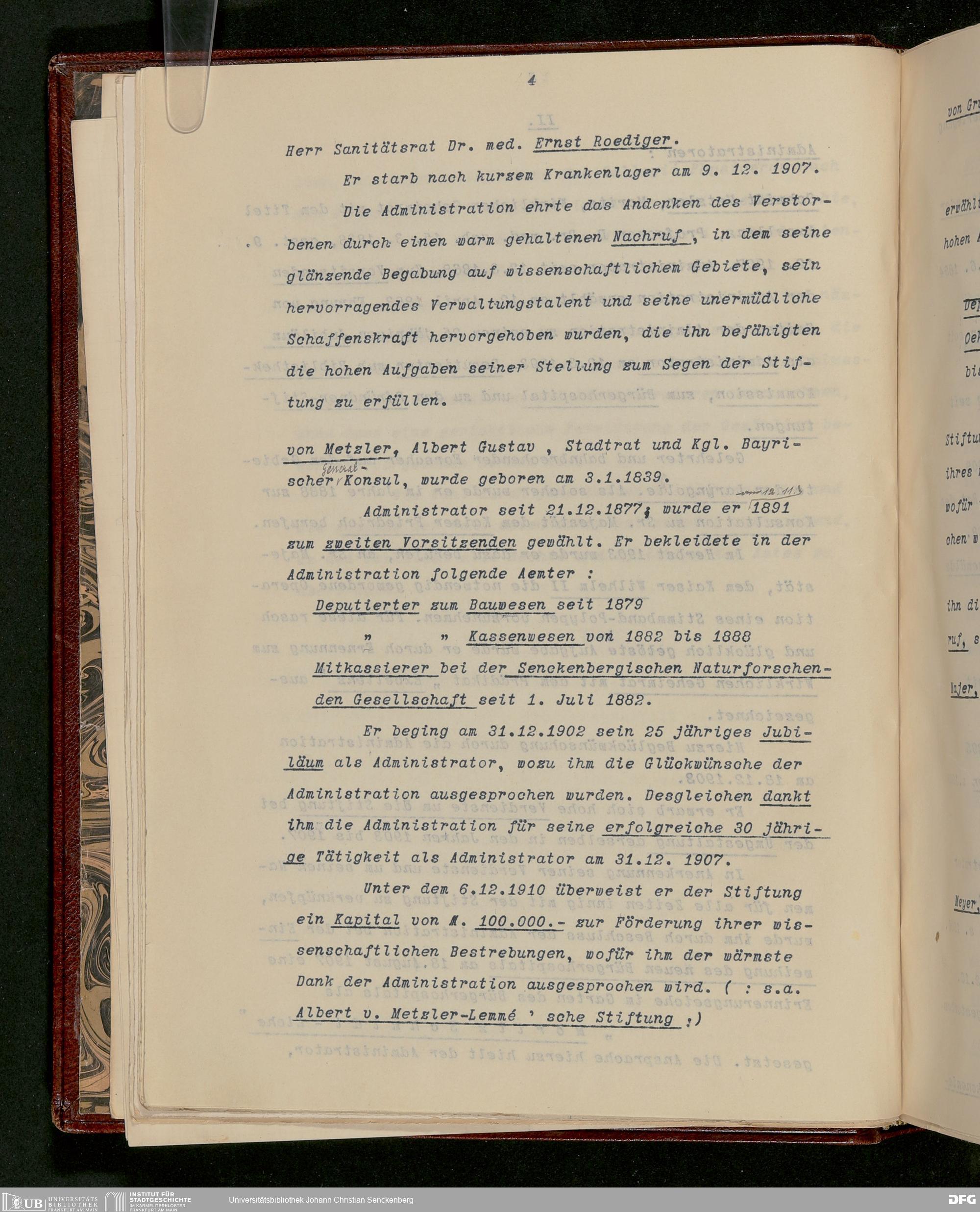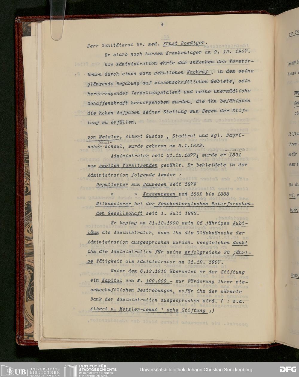 V48 Dr. Senckenbergische Stiftung, 227 - Gustav Ebeling, "Die Dr. Senckenbergische Stiftung in den Jahren 1900 bis Ende 1912", Frankfurt 1912