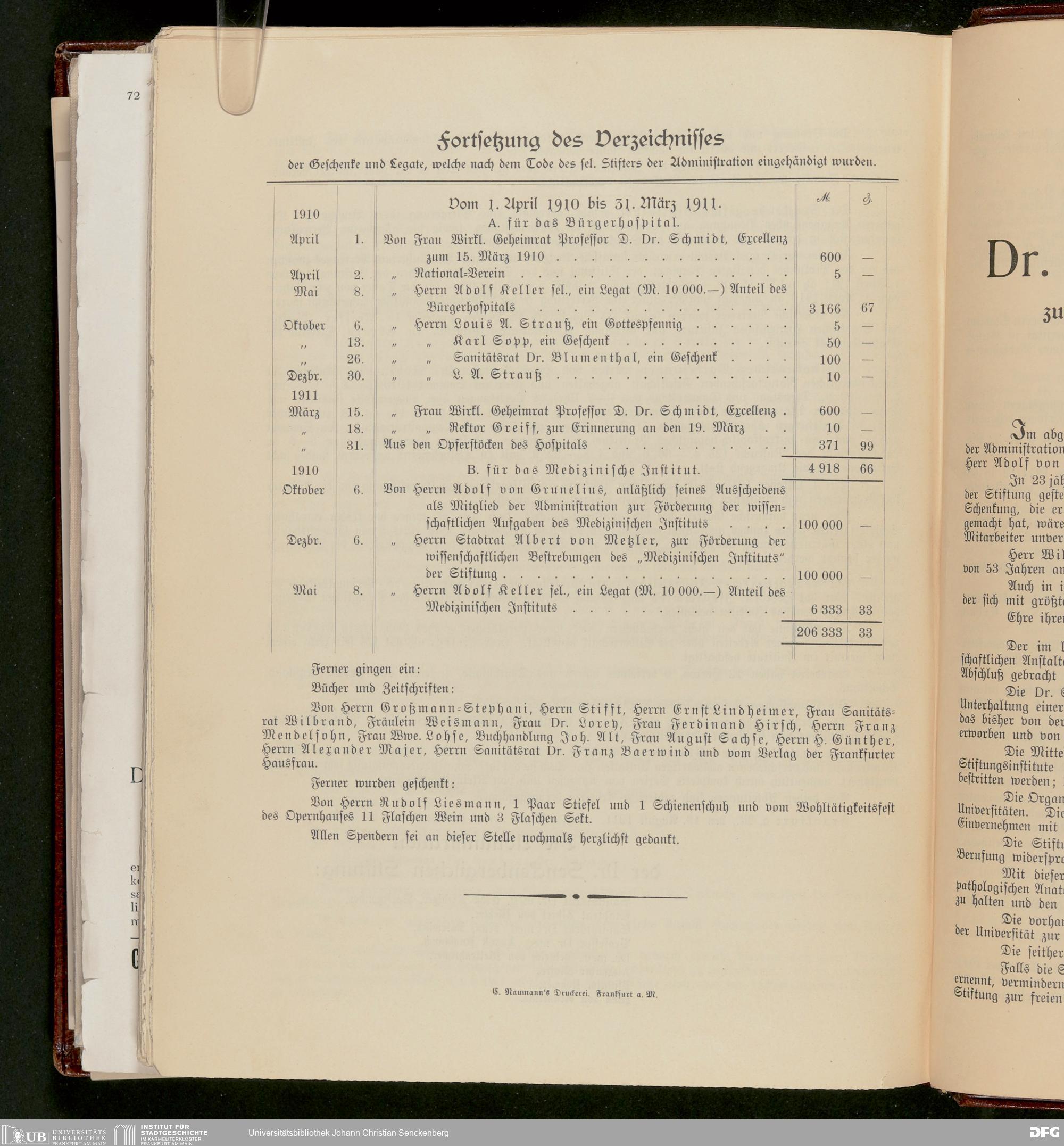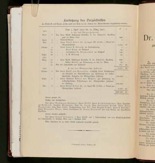 V48 Dr. Senckenbergische Stiftung, 227 - Gustav Ebeling, "Die Dr. Senckenbergische Stiftung in den Jahren 1900 bis Ende 1912", Frankfurt 1912