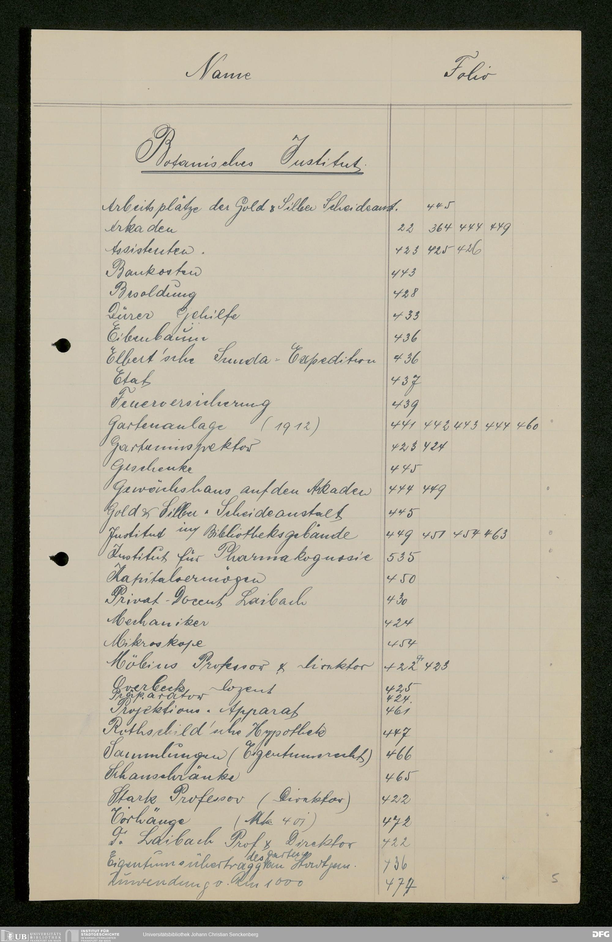 V48 Dr. Senckenbergische Stiftung, 282 - Notizen zur Geschichte der Stiftung ab dem 1. Januar 1913