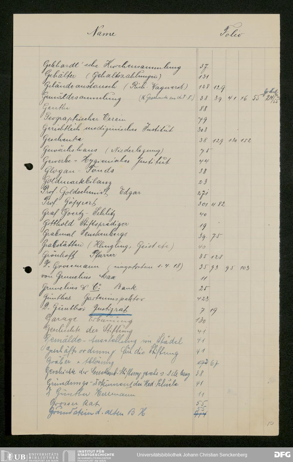 V48 Dr. Senckenbergische Stiftung, 282 - Notizen zur Geschichte der Stiftung ab dem 1. Januar 1913