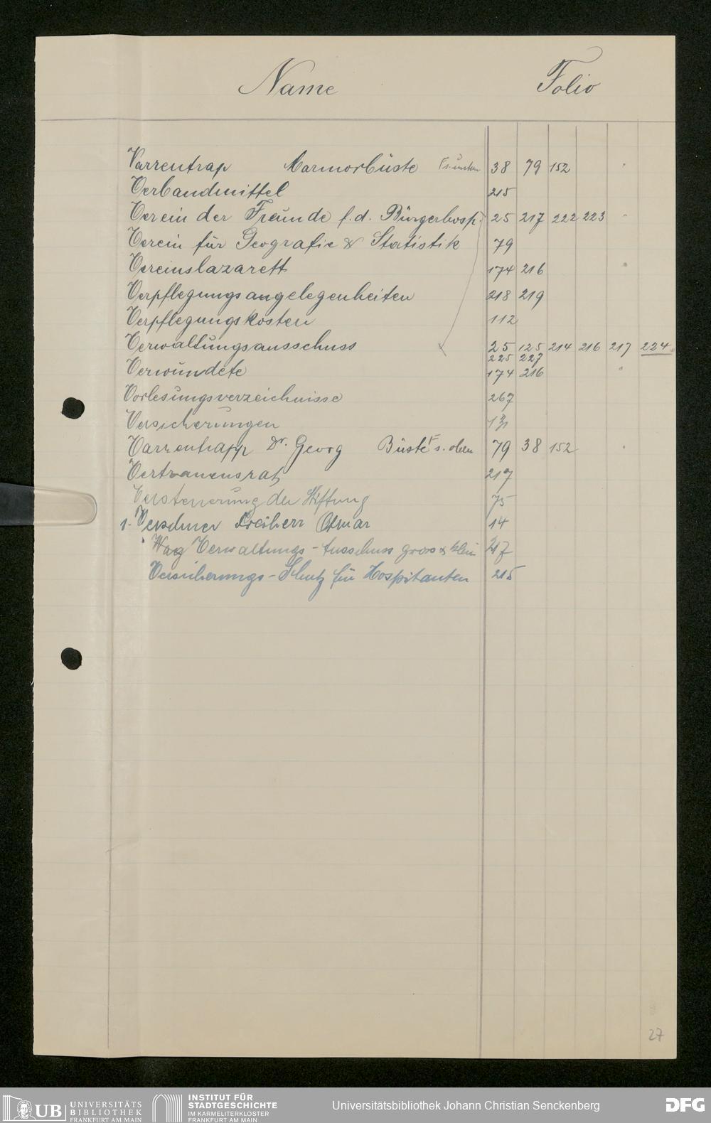 V48 Dr. Senckenbergische Stiftung, 282 - Notizen zur Geschichte der Stiftung ab dem 1. Januar 1913