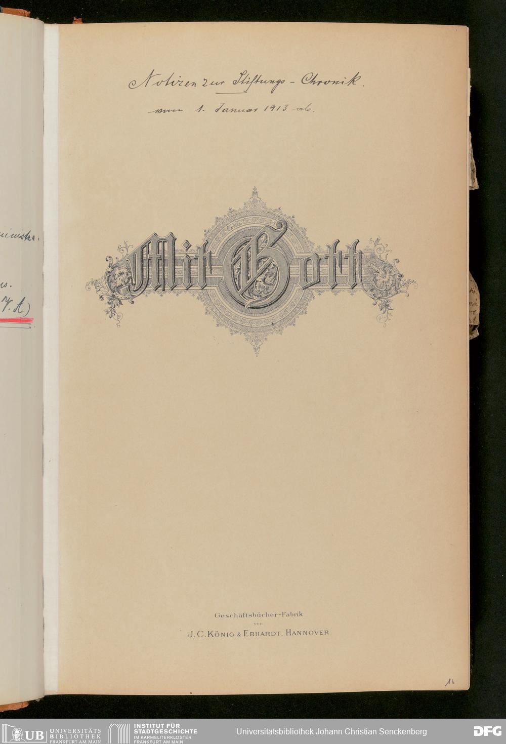 V48 Dr. Senckenbergische Stiftung, 282 - Notizen zur Geschichte der Stiftung ab dem 1. Januar 1913