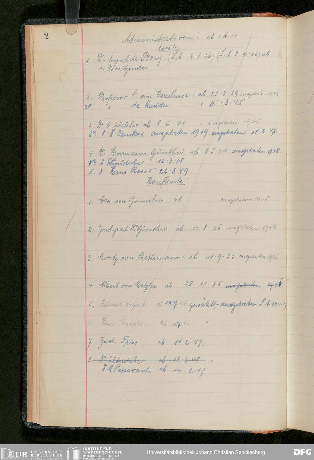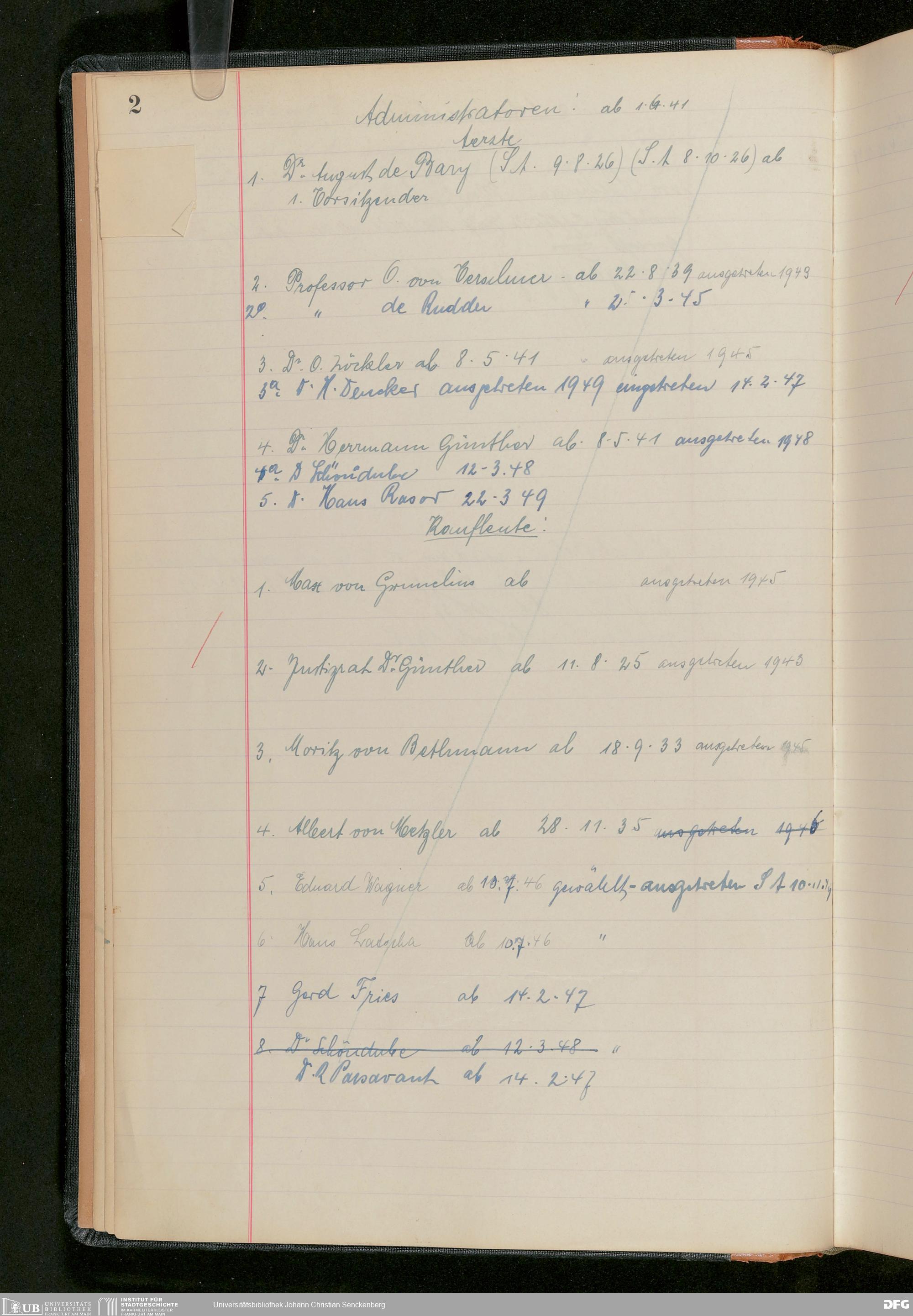 V48 Dr. Senckenbergische Stiftung, 282 - Notizen zur Geschichte der Stiftung ab dem 1. Januar 1913