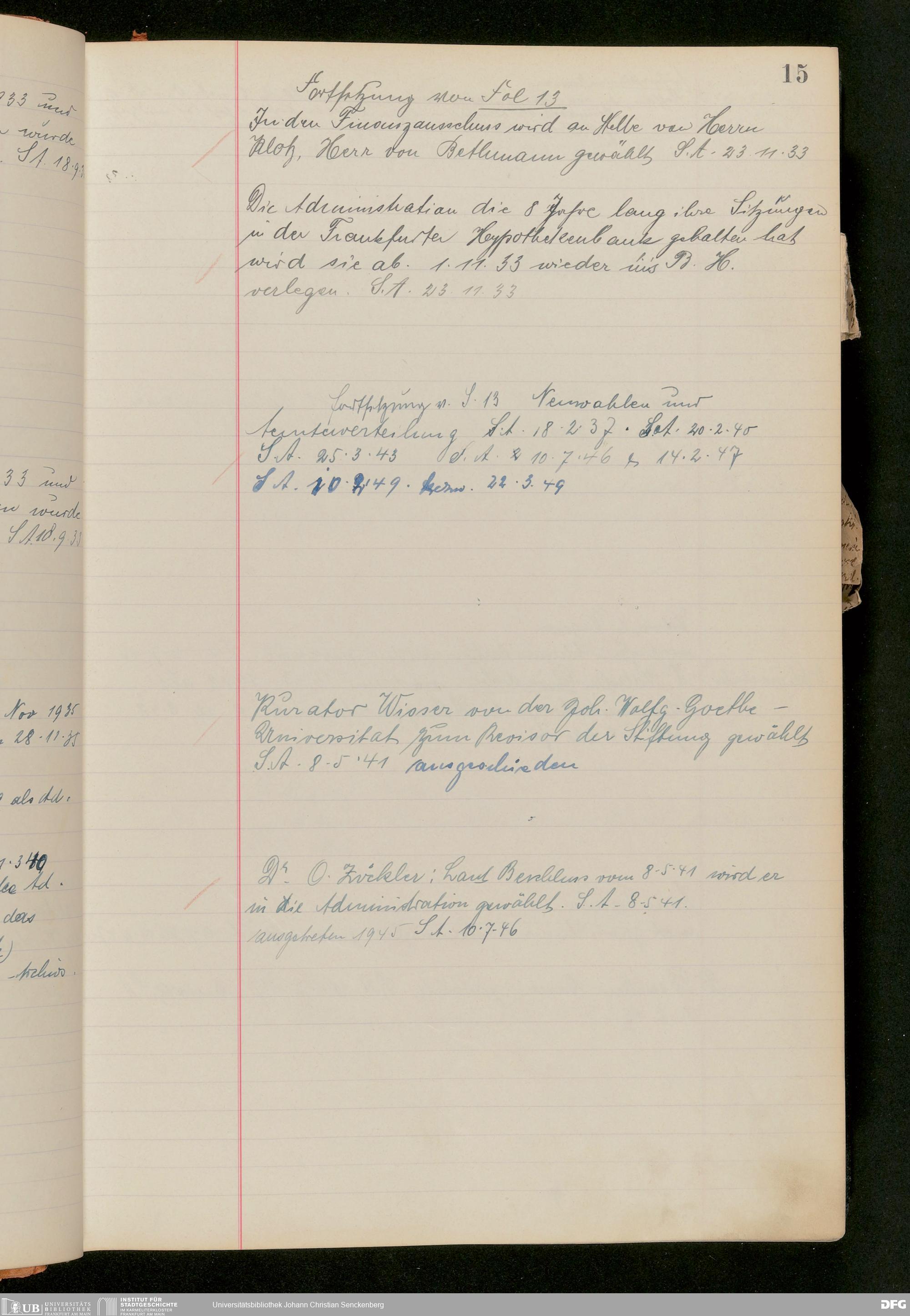 V48 Dr. Senckenbergische Stiftung, 282 - Notizen zur Geschichte der Stiftung ab dem 1. Januar 1913