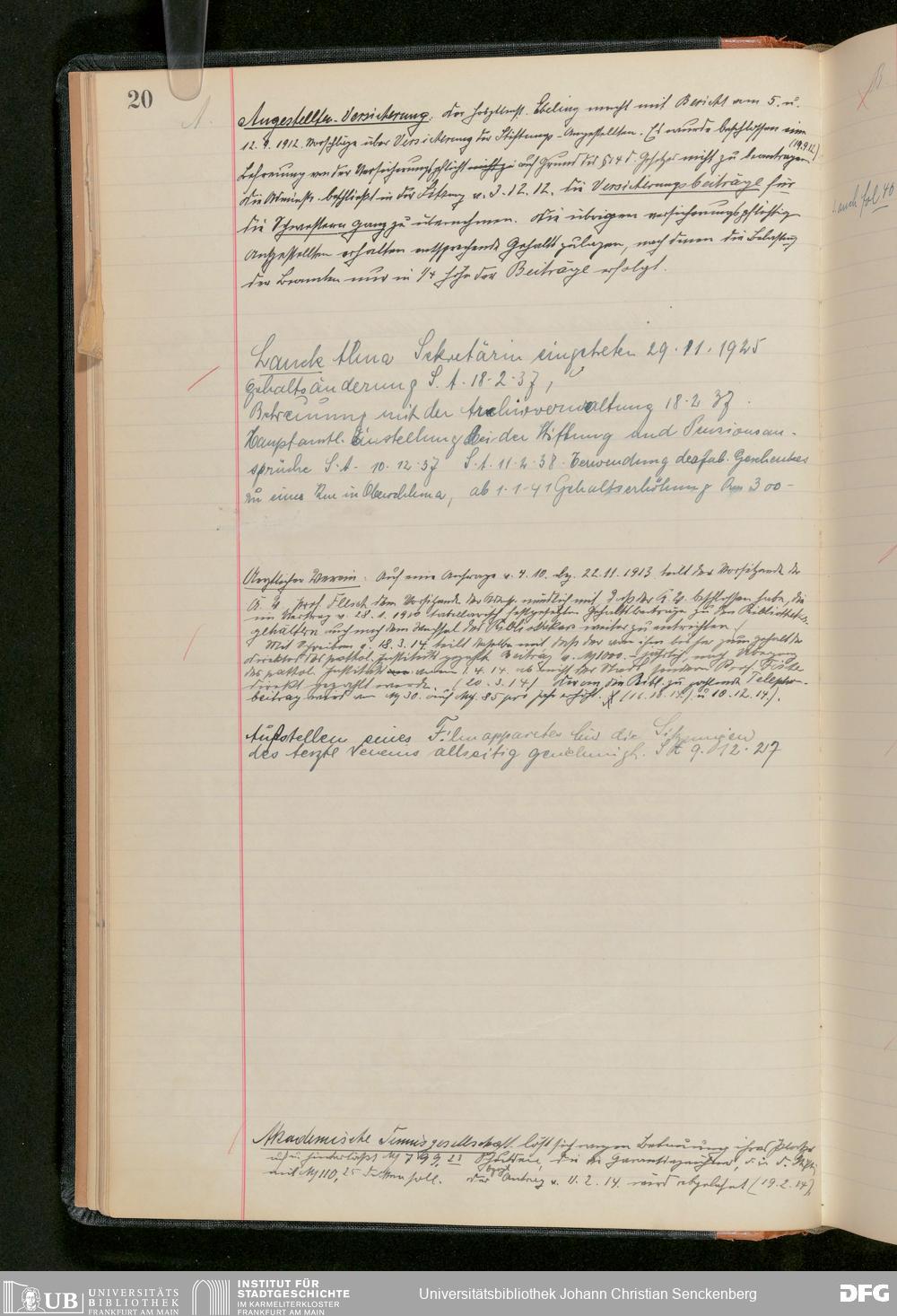 V48 Dr. Senckenbergische Stiftung, 282 - Notizen zur Geschichte der Stiftung ab dem 1. Januar 1913