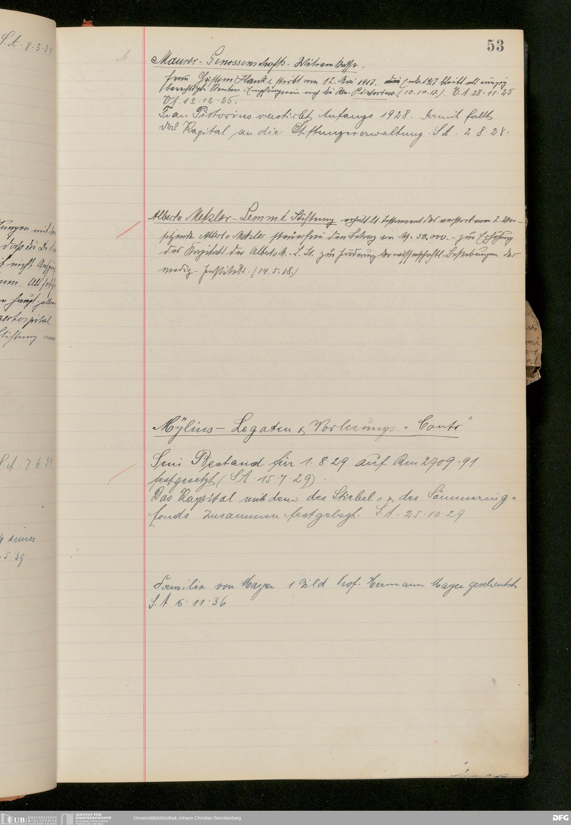 V48 Dr. Senckenbergische Stiftung, 282 - Notizen zur Geschichte der Stiftung ab dem 1. Januar 1913
