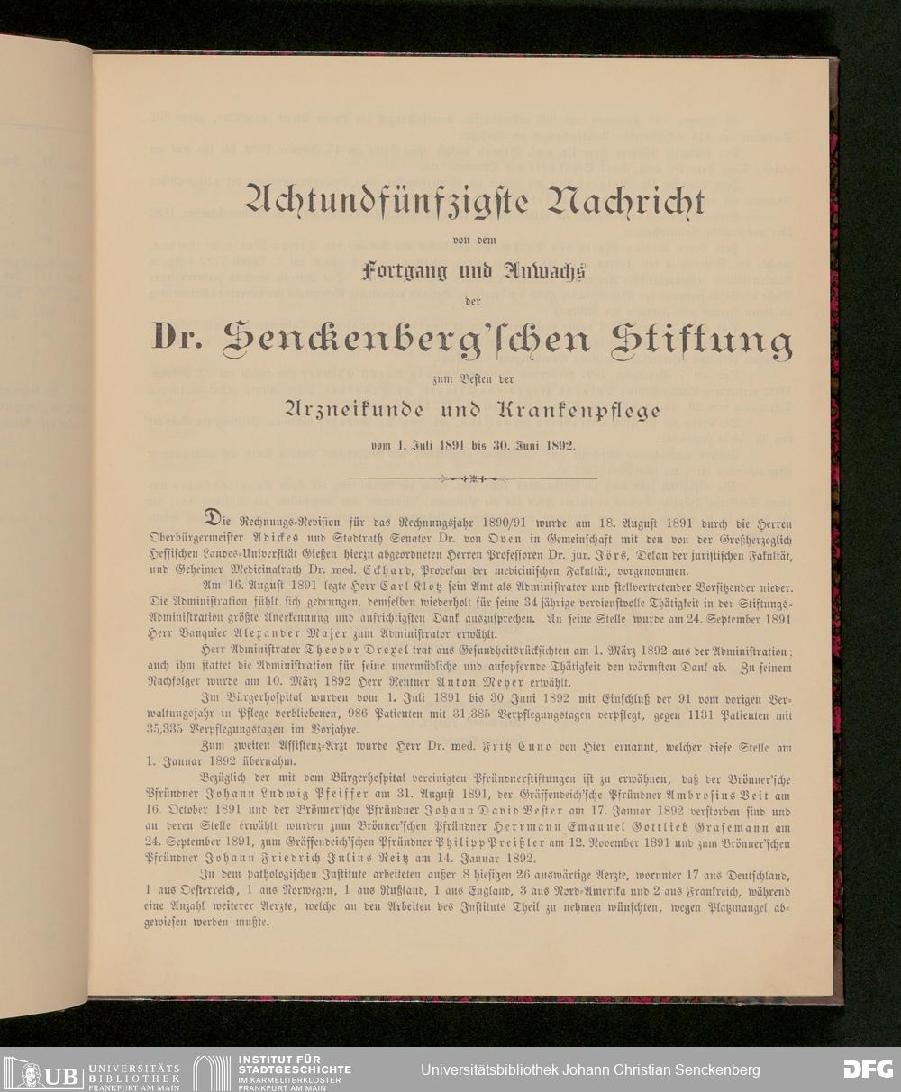 V48 Dr. Senckenbergische Stiftung, 283 - Jahresberichte Nr. 56-101