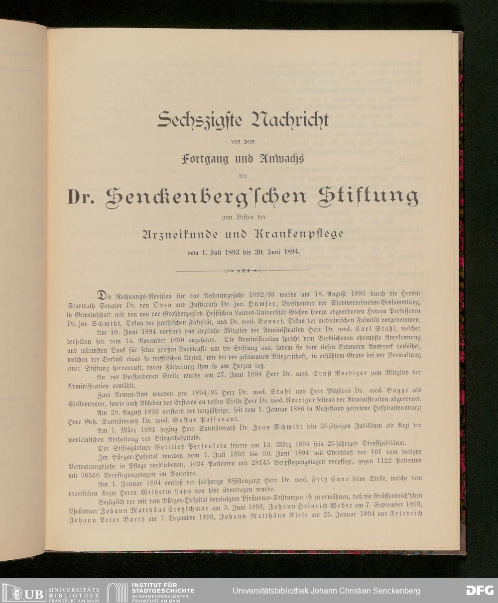 V48 Dr. Senckenbergische Stiftung, 283 - Jahresberichte Nr. 56-101