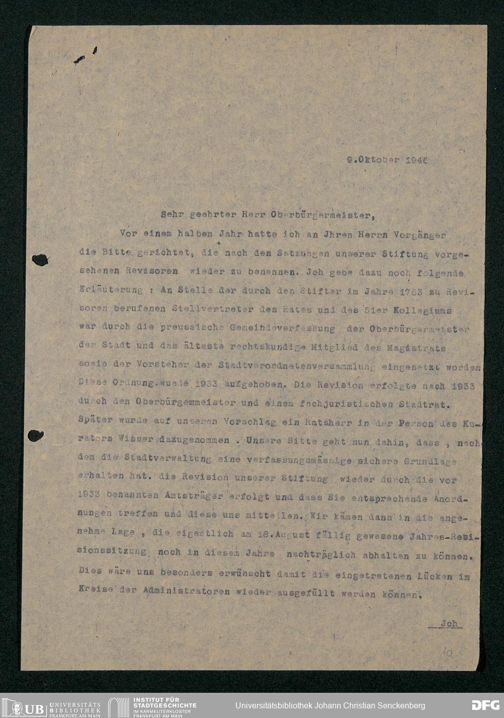V48 Dr. Senckenbergische Stiftung, 295 - Aufsicht über die Stiftung in Revisionsangelegenheiten