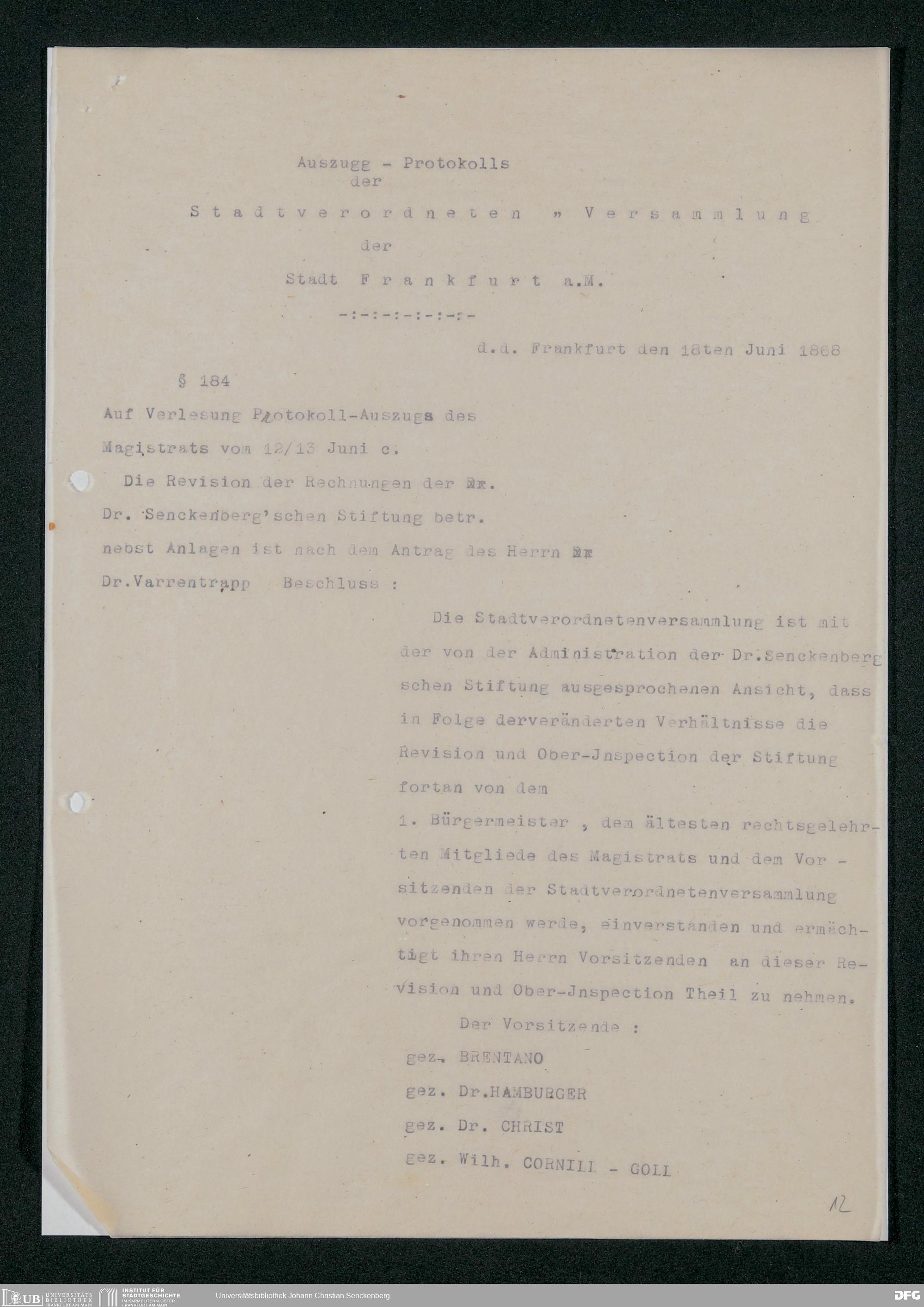 V48 Dr. Senckenbergische Stiftung, 295 - Aufsicht über die Stiftung in Revisionsangelegenheiten