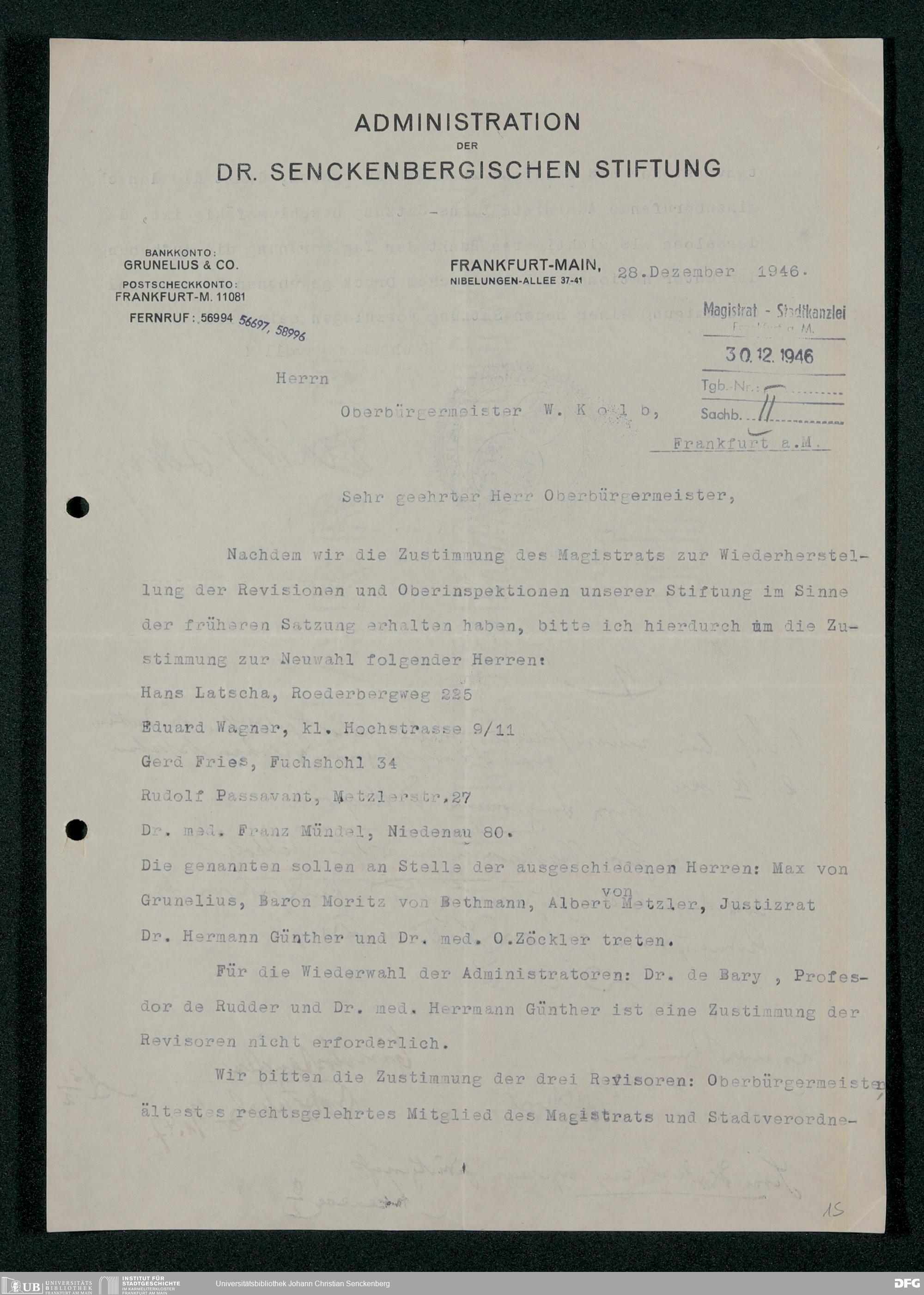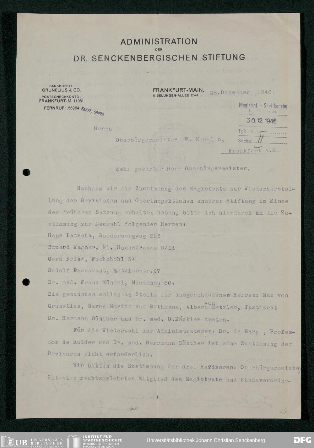 V48 Dr. Senckenbergische Stiftung, 295 - Aufsicht über die Stiftung in Revisionsangelegenheiten