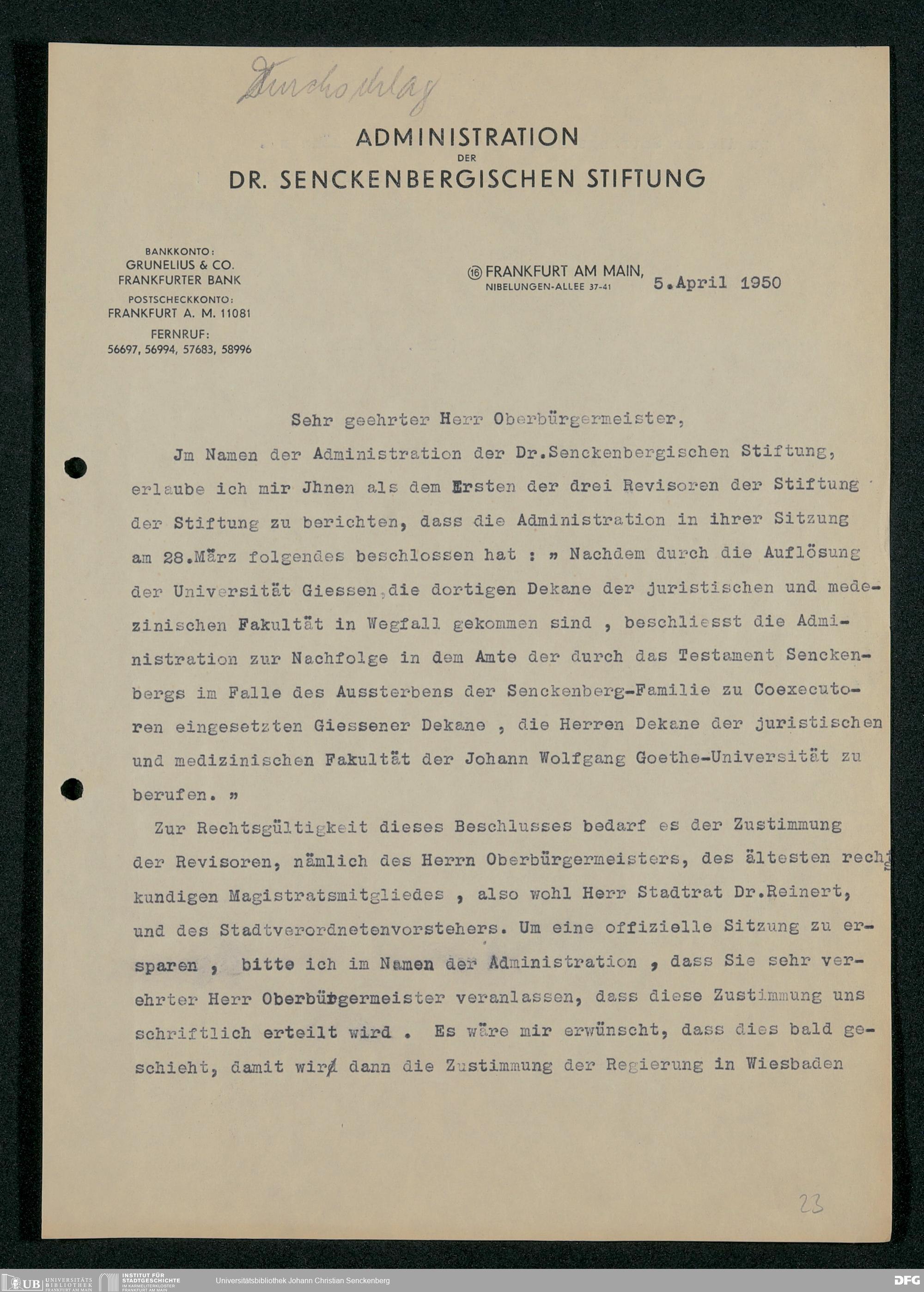 V48 Dr. Senckenbergische Stiftung, 295 - Aufsicht über die Stiftung in Revisionsangelegenheiten
