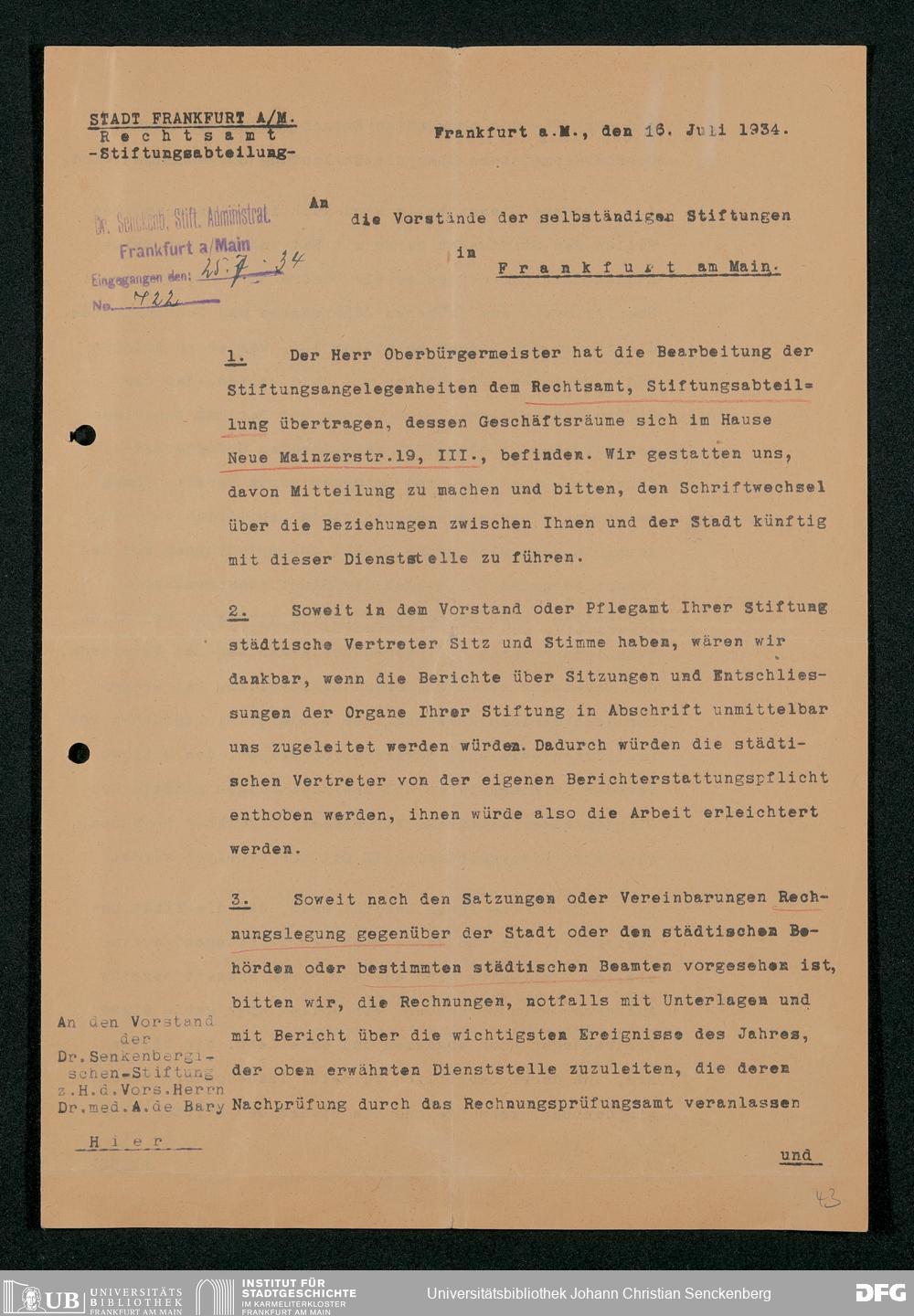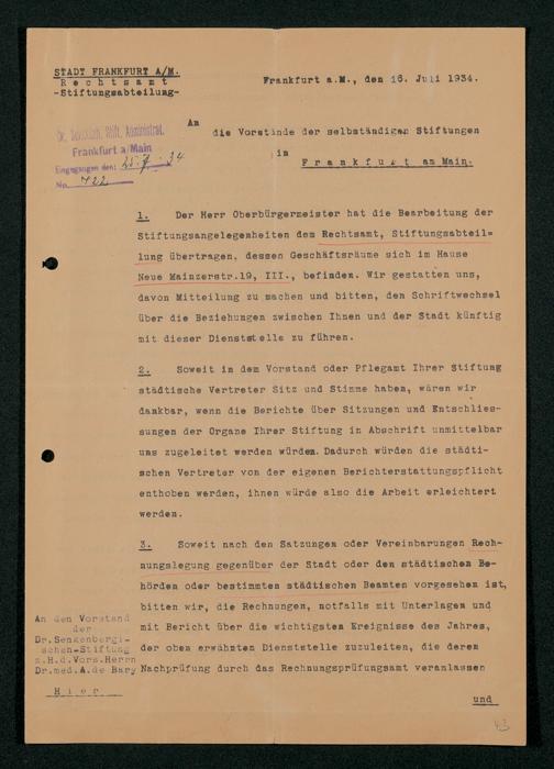 V48 Dr. Senckenbergische Stiftung, 295 - Aufsicht über die Stiftung in Revisionsangelegenheiten