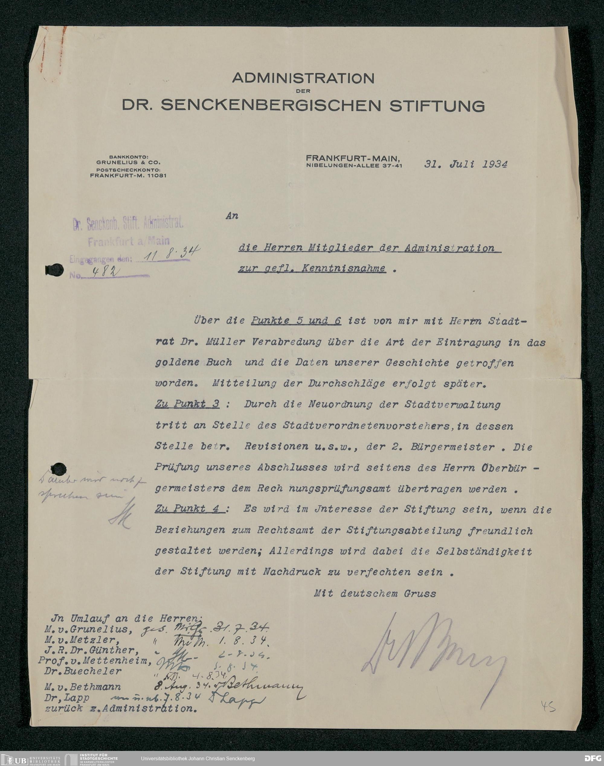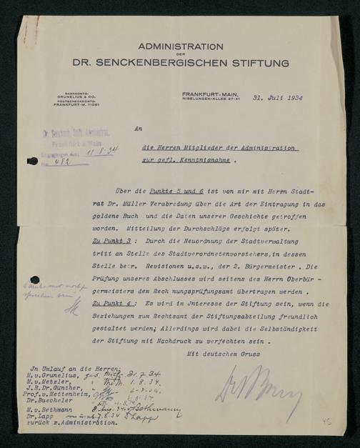 V48 Dr. Senckenbergische Stiftung, 295 - Aufsicht über die Stiftung in Revisionsangelegenheiten