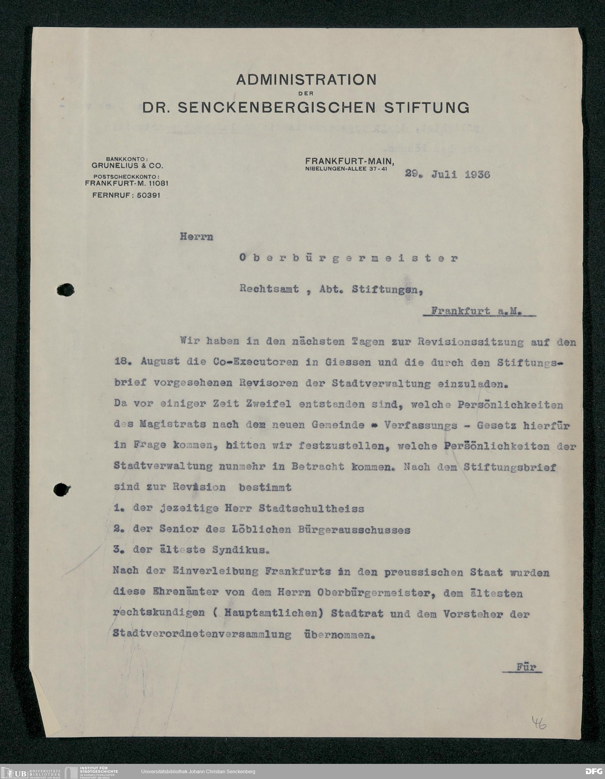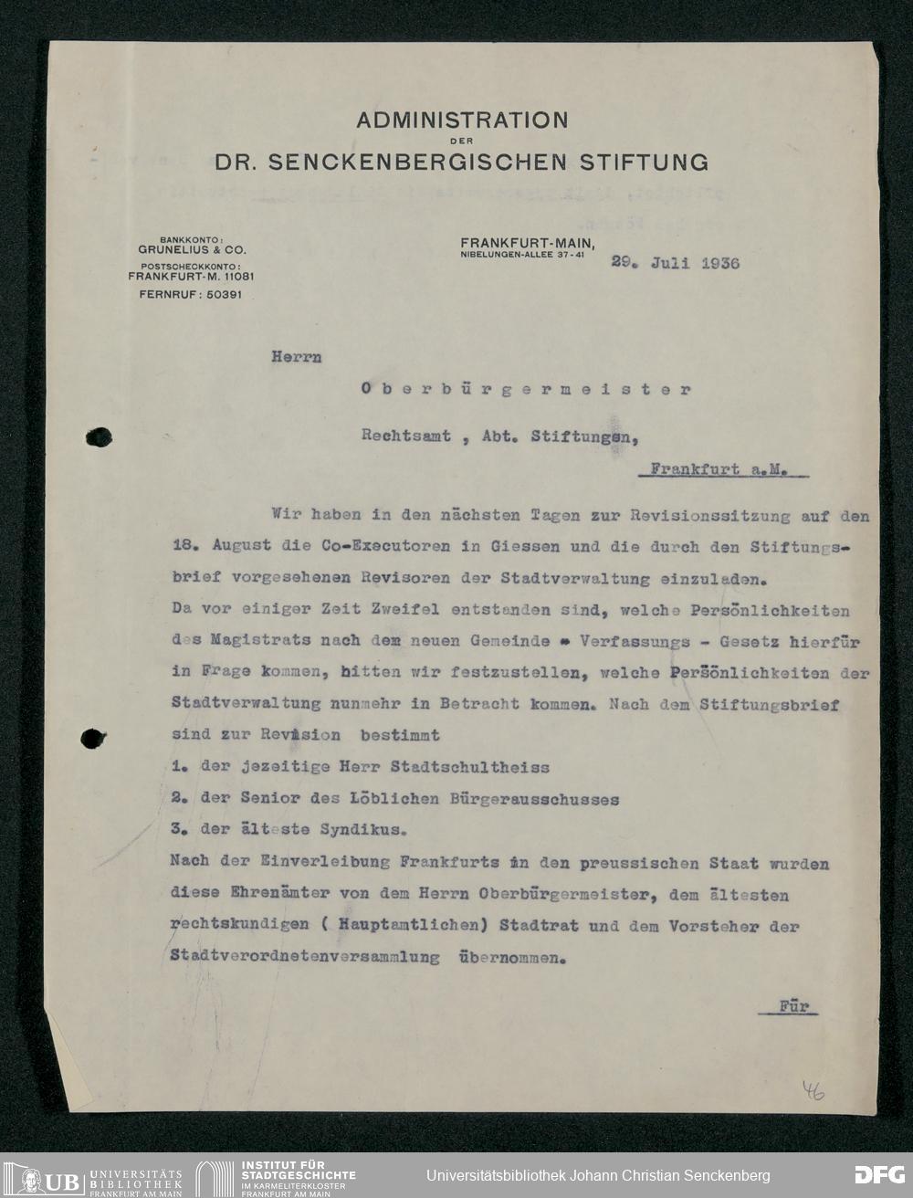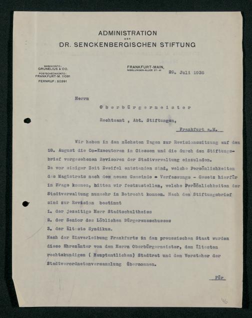 V48 Dr. Senckenbergische Stiftung, 295 - Aufsicht über die Stiftung in Revisionsangelegenheiten