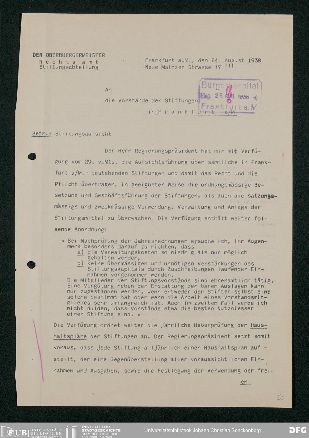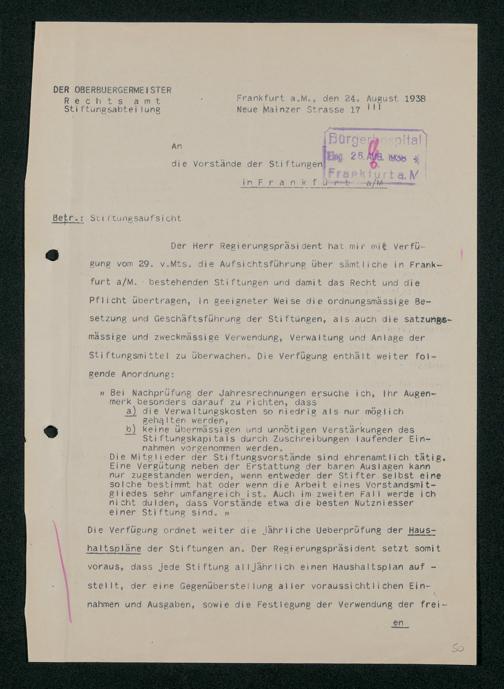 V48 Dr. Senckenbergische Stiftung, 295 - Aufsicht über die Stiftung in Revisionsangelegenheiten