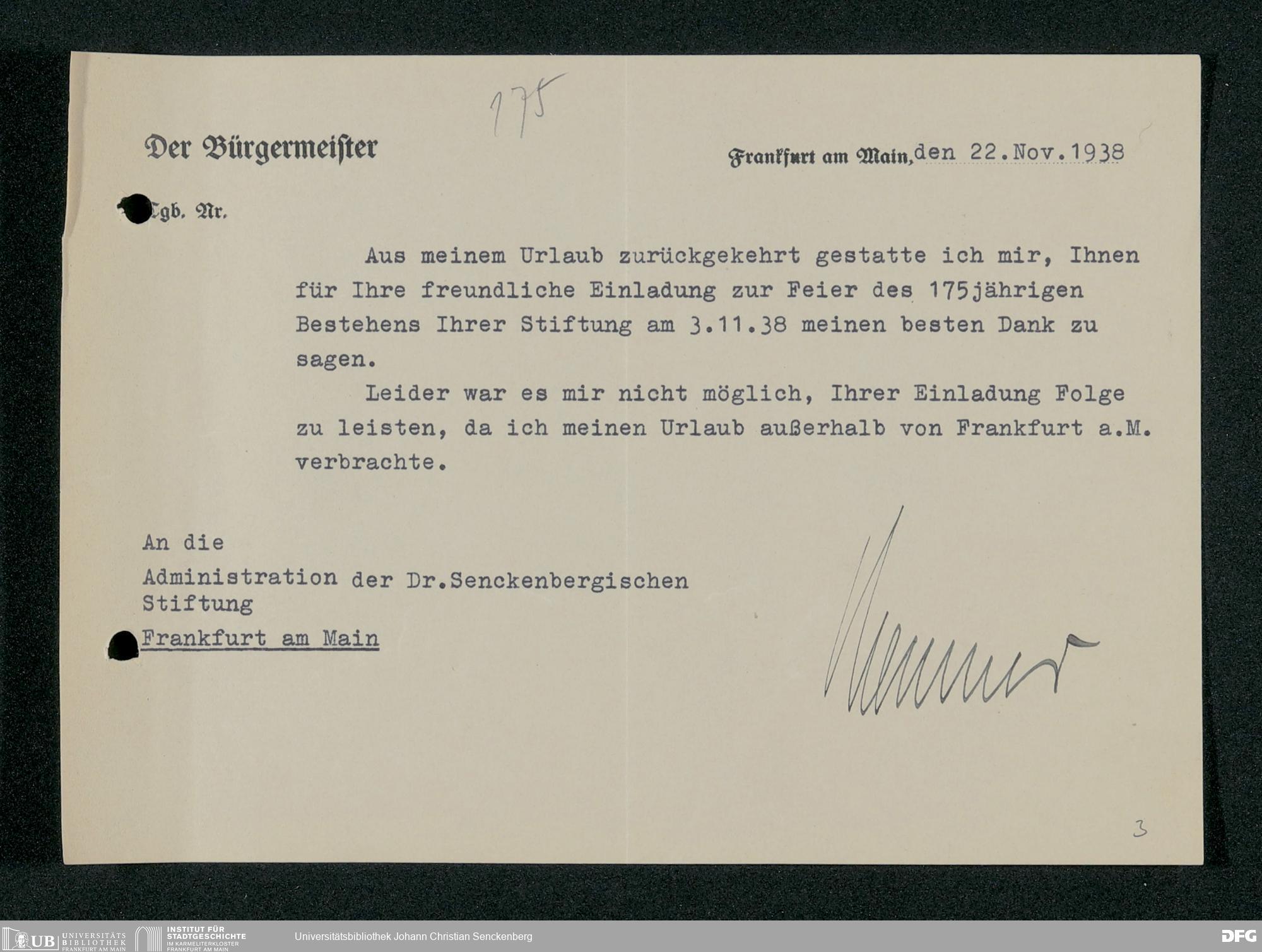 V48 Dr. Senckenbergische Stiftung, 298 - 175-Jahr-Feier der Stiftung