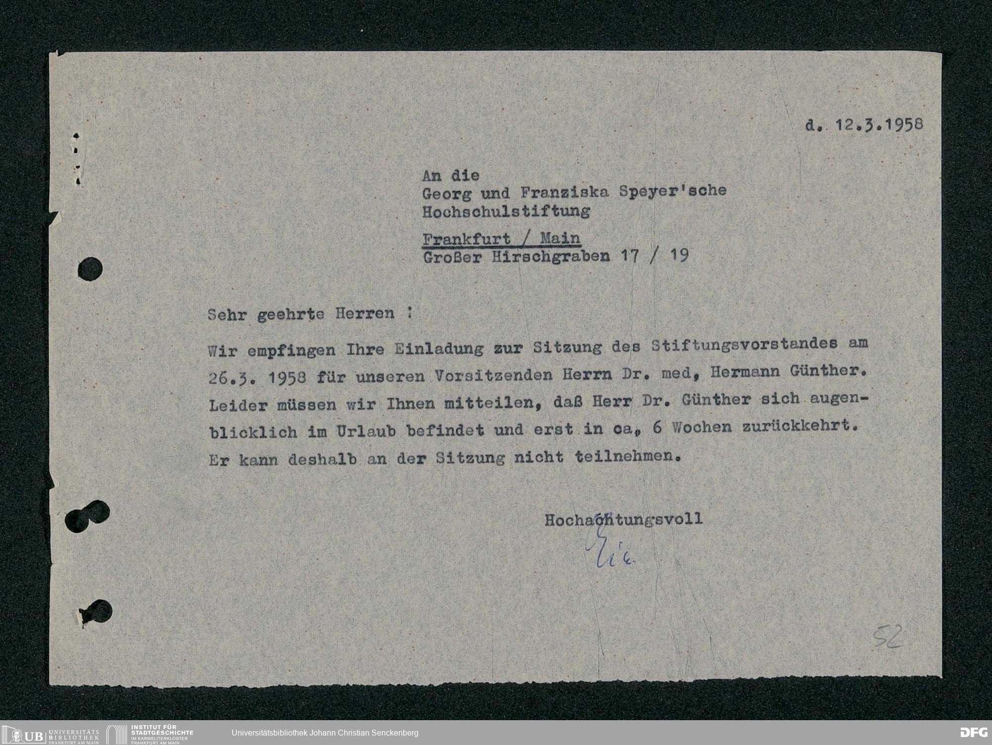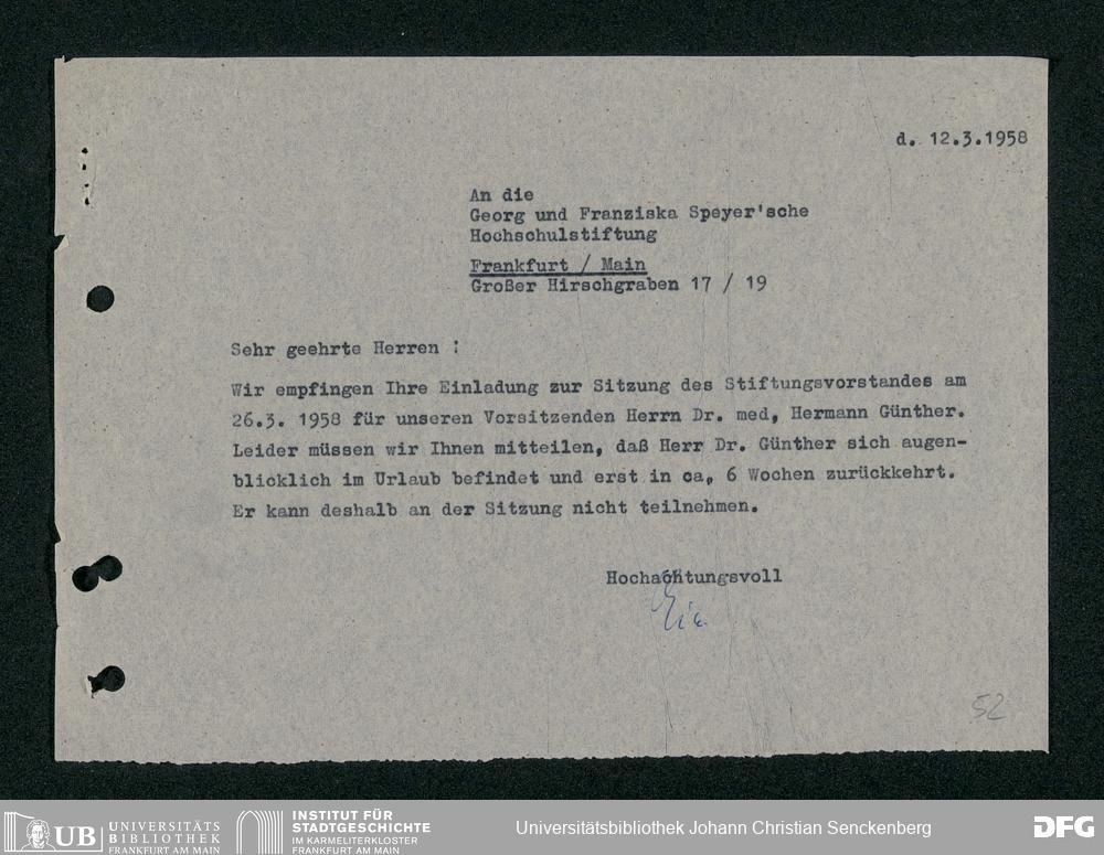 V48 Dr. Senckenbergische Stiftung, 299 - Georg & Franziska Speyer'sche Studienstiftung