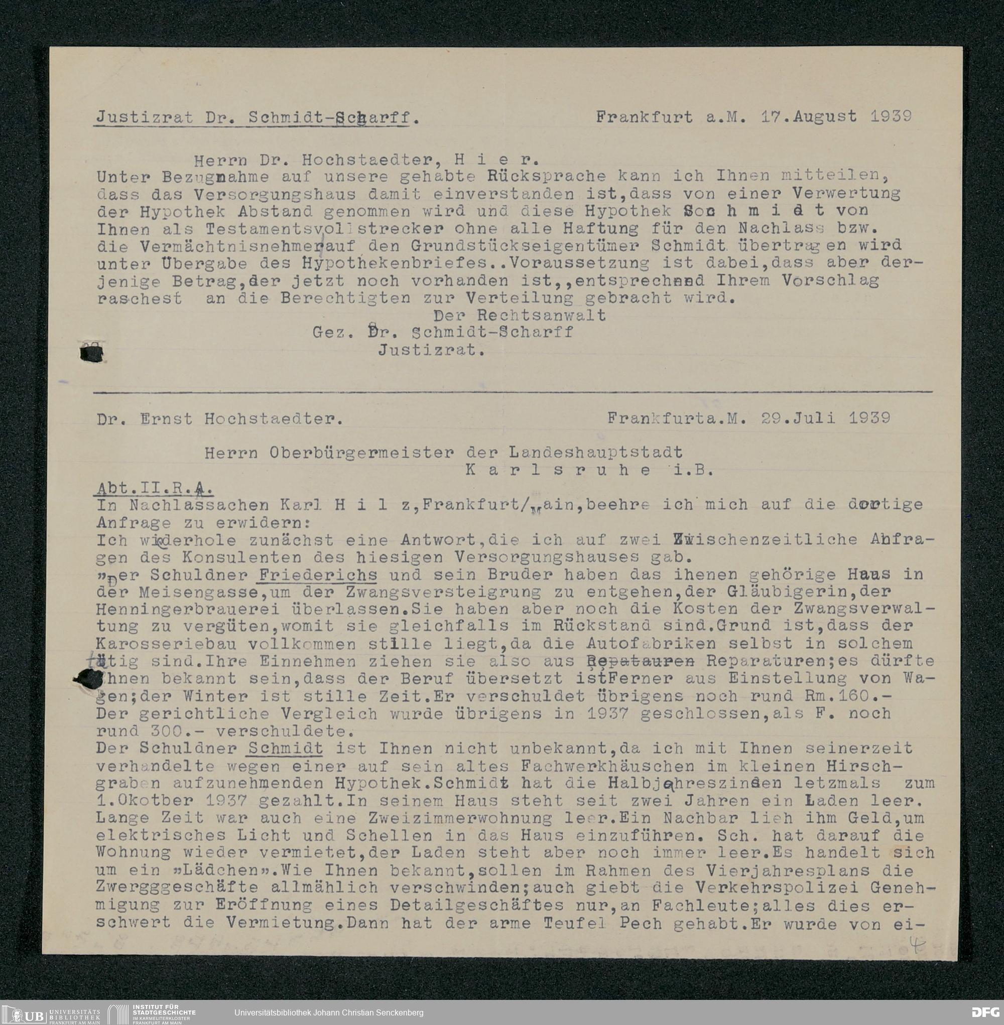 V48 Dr. Senckenbergische Stiftung, 317 - Nachlässe Hilz und Fritsch